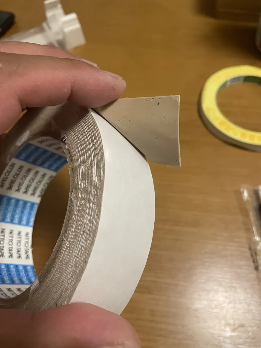 当初はコチラの両面テープで貼り付けましたが、んんん。。。外れるな🤭と感じながらもトライしてみました。