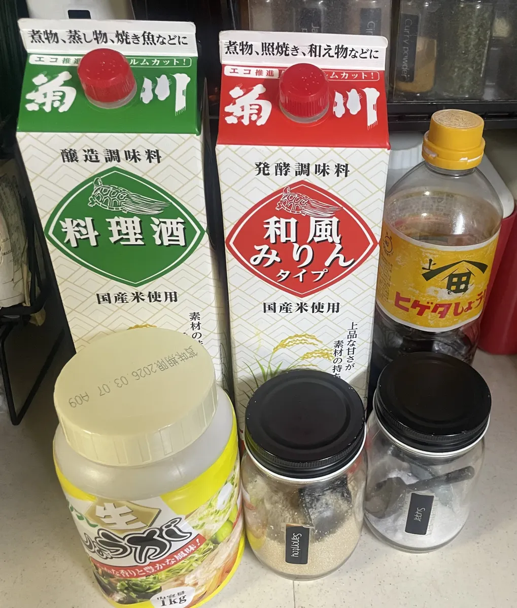 ①酒・味醂・醤油・三温糖・生姜・和風顆粒出汁(昆布)