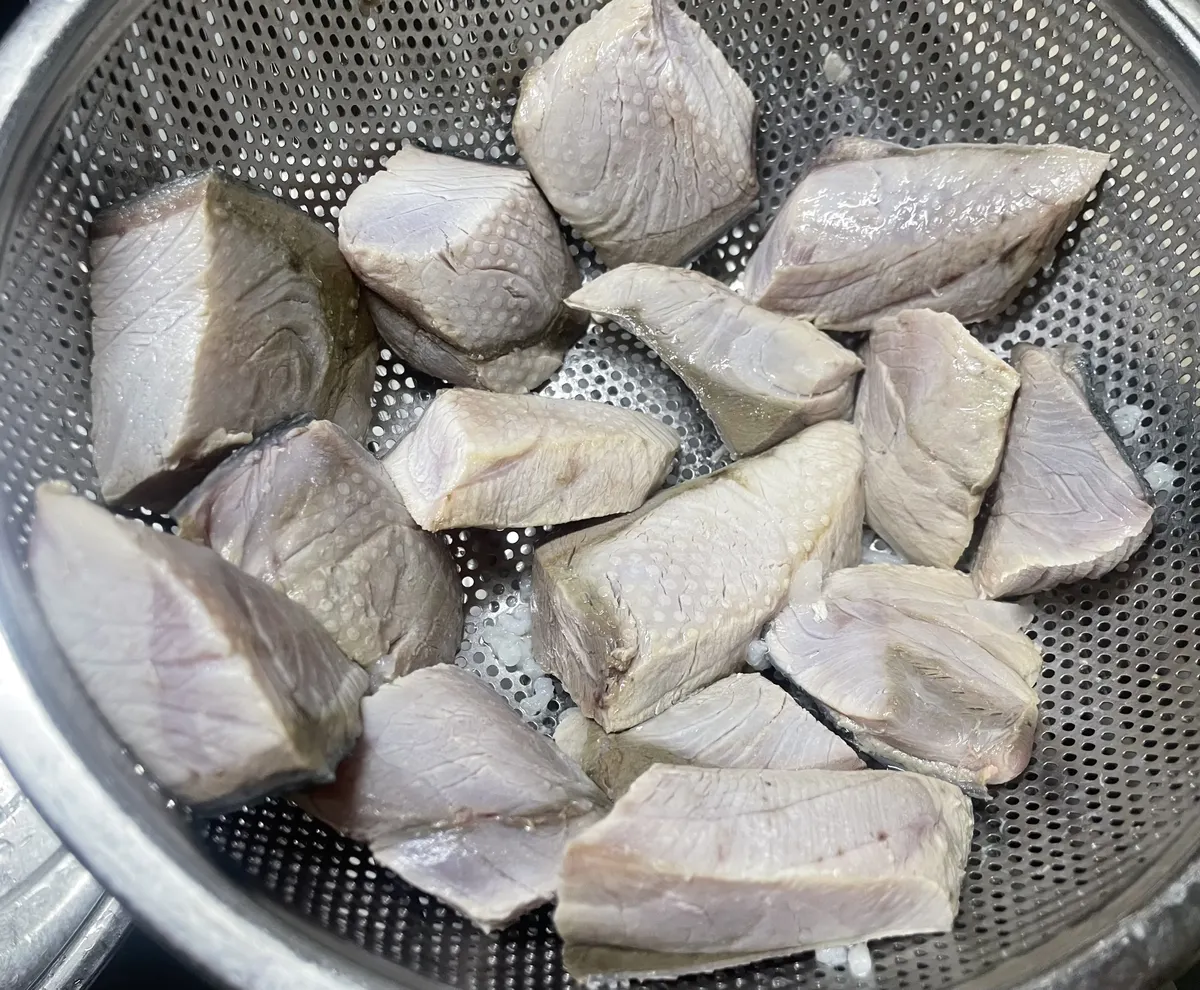 大根が煮えたらその煮汁で表裏引っくり返して霜降りの下処理をするぅ〜🐟🚿♨️✨