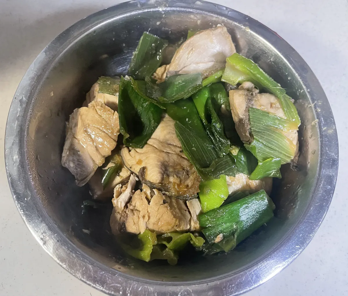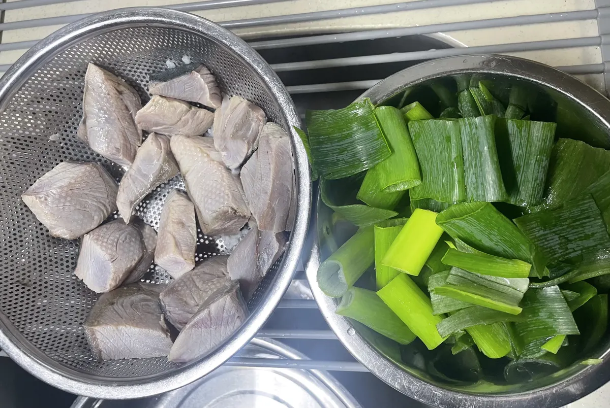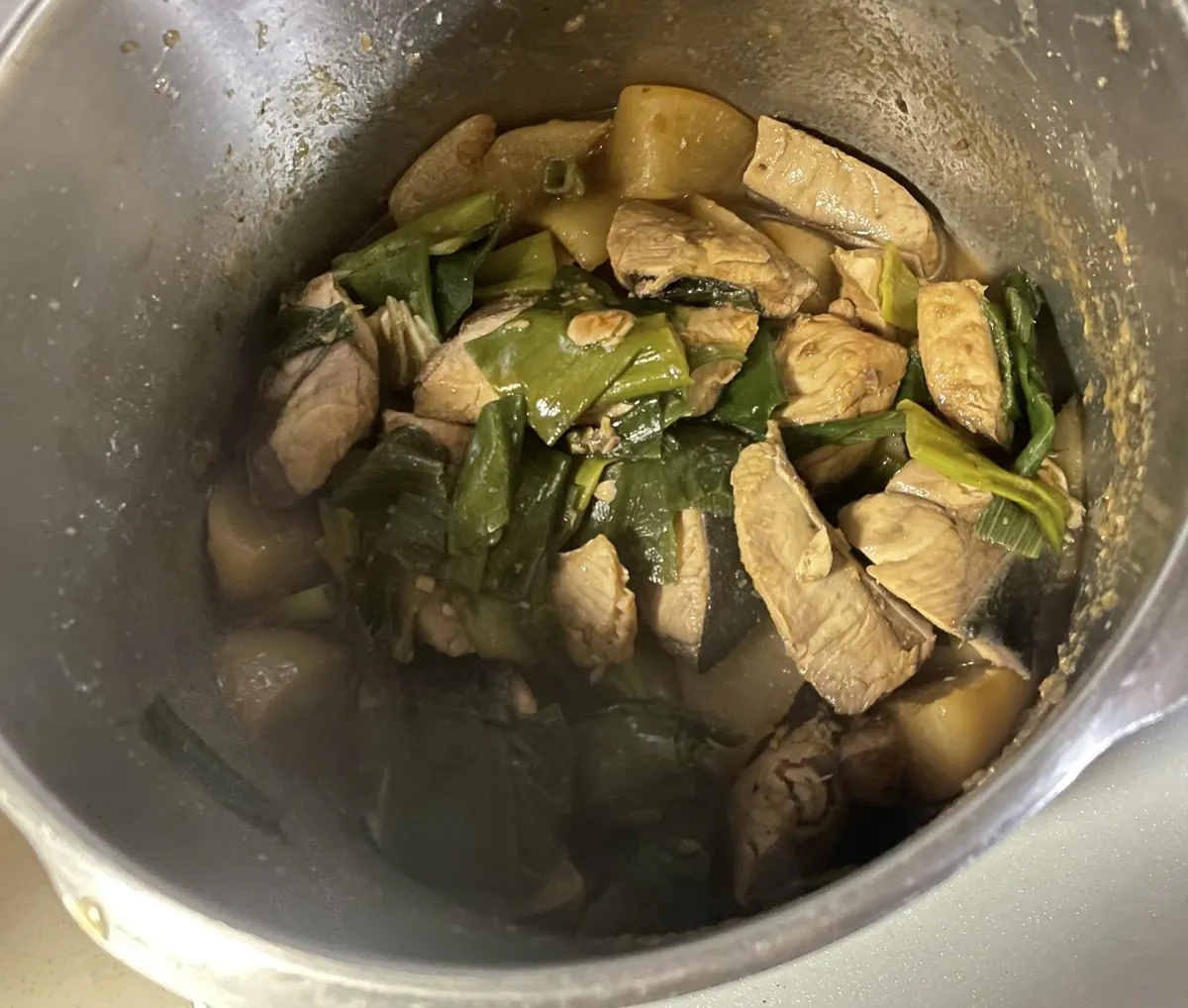そんたら鰤と葱青身戻して一煮立ちで完成〜っ😆🙌🐟💚➰🍲🔥🔜‼️💨✨