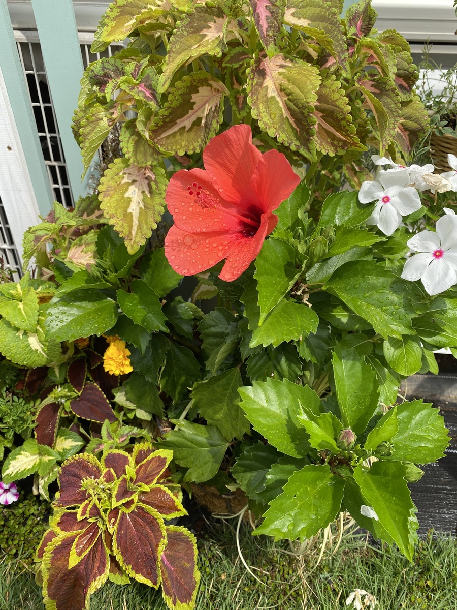 真夏に苗を移動させるのも、と考えましたが、鉢上げして日陰に。