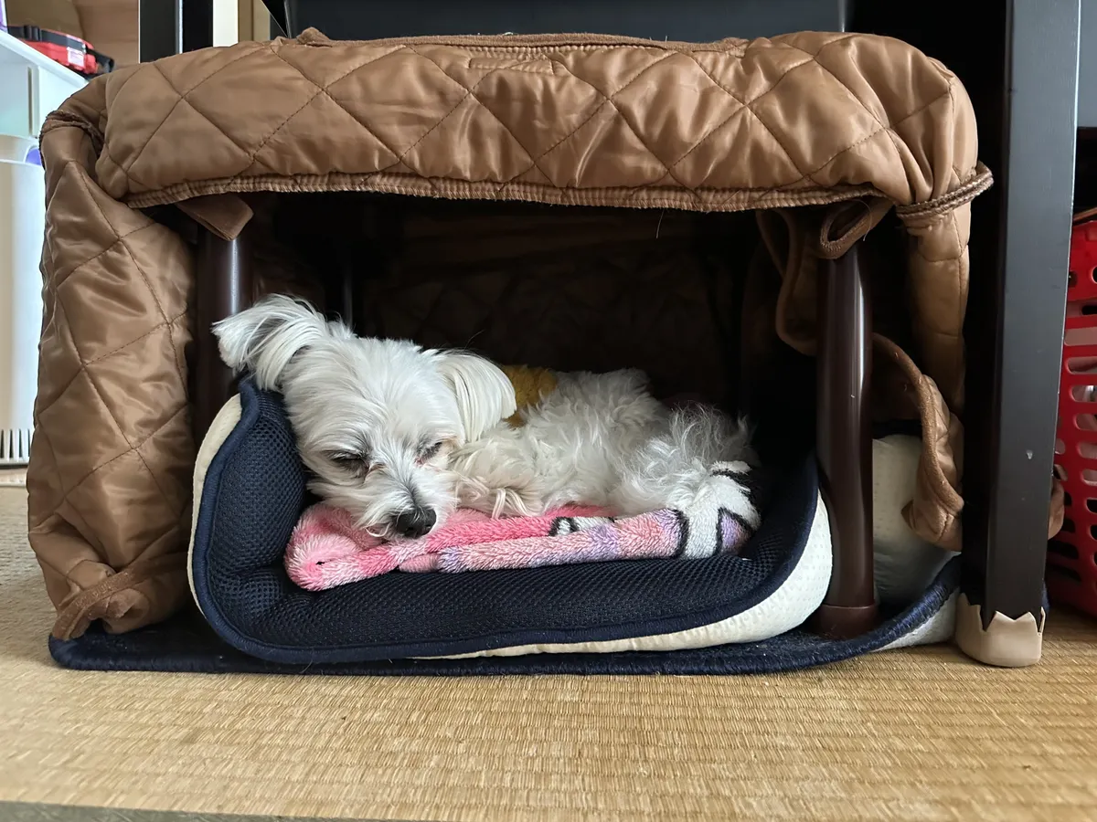 投稿を表示コタツぬくぬく空間、ワンコ幸せですね💕