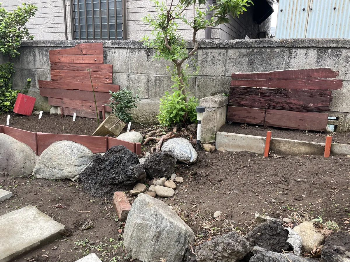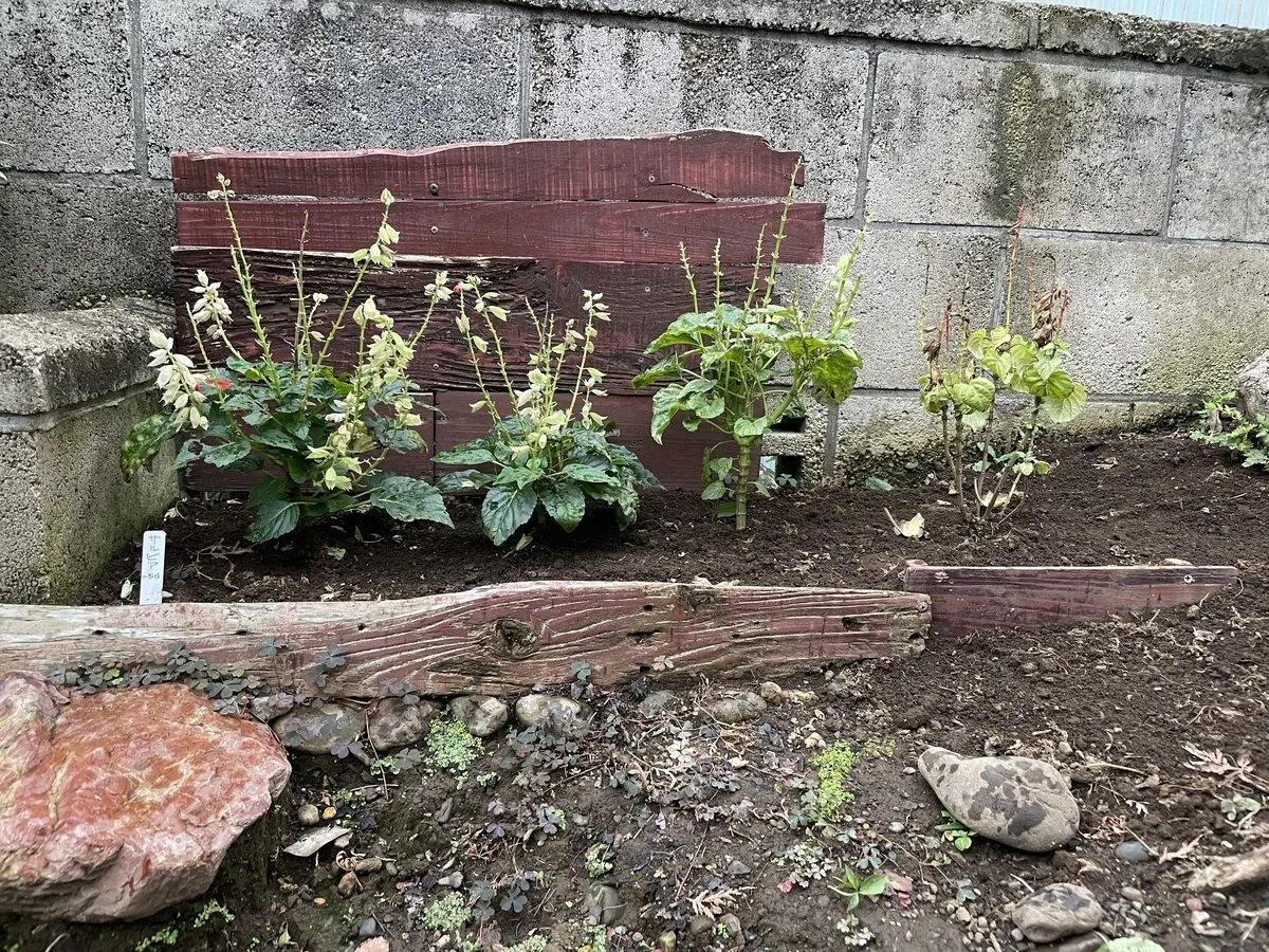 昨年10月にサルビアの株を植えてた屏風?花壇2(リンク→ https://diy-square.cainz.com/announcements/tcjs4gulk1etnggh )、結局サルビアの越冬は出来ず、いつの間にか根っこも何処かに吹き飛んでしまいました。夏の高温で多年草としては生き残れなかったようです。
