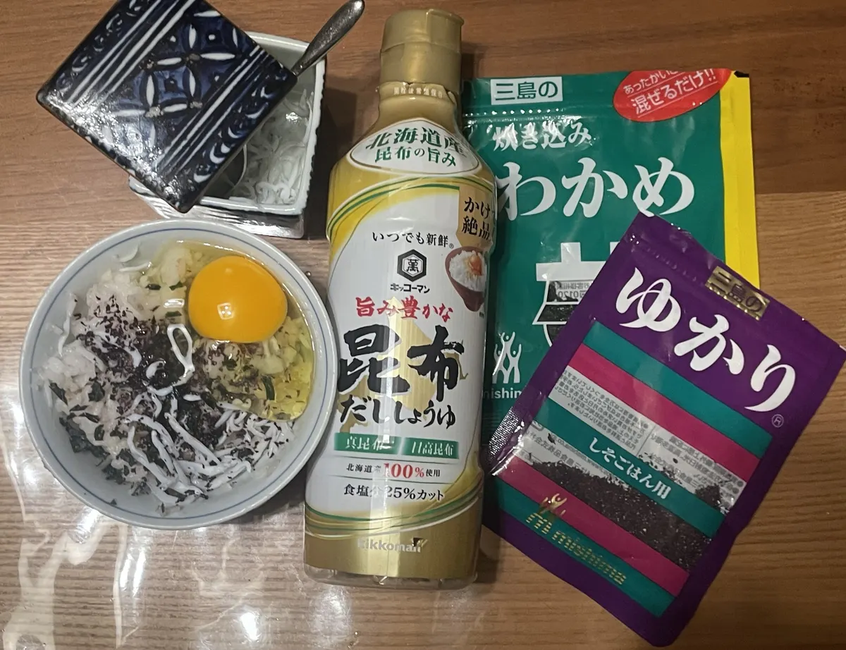 後から炊き込みわかめとゆかりと卵も足しちゃったぁ〜🥚✨