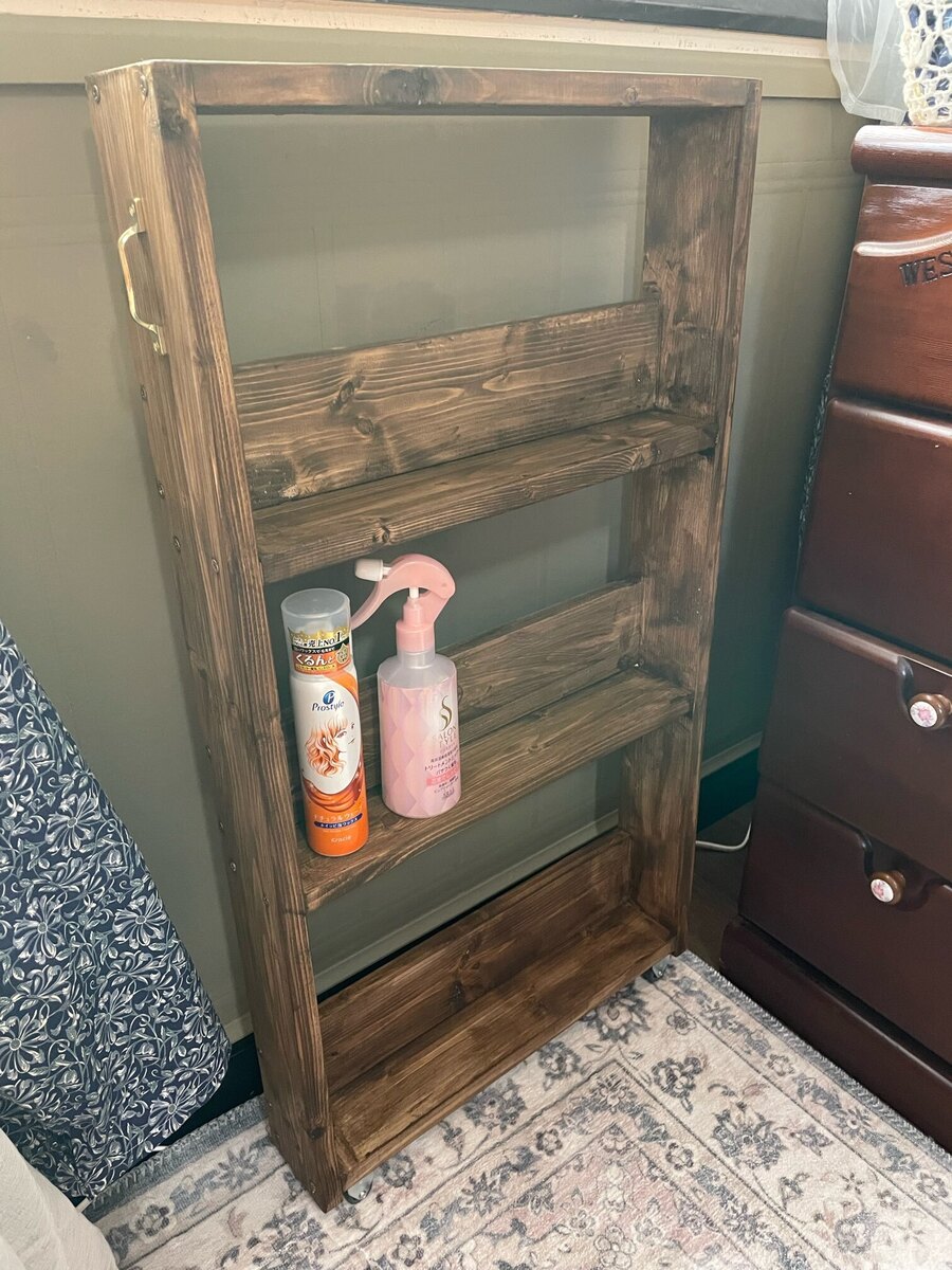 投稿を表示ストックを保管するのにピッタリです。サイドの木を長くしてキャスターがうまく隠れていますよね。