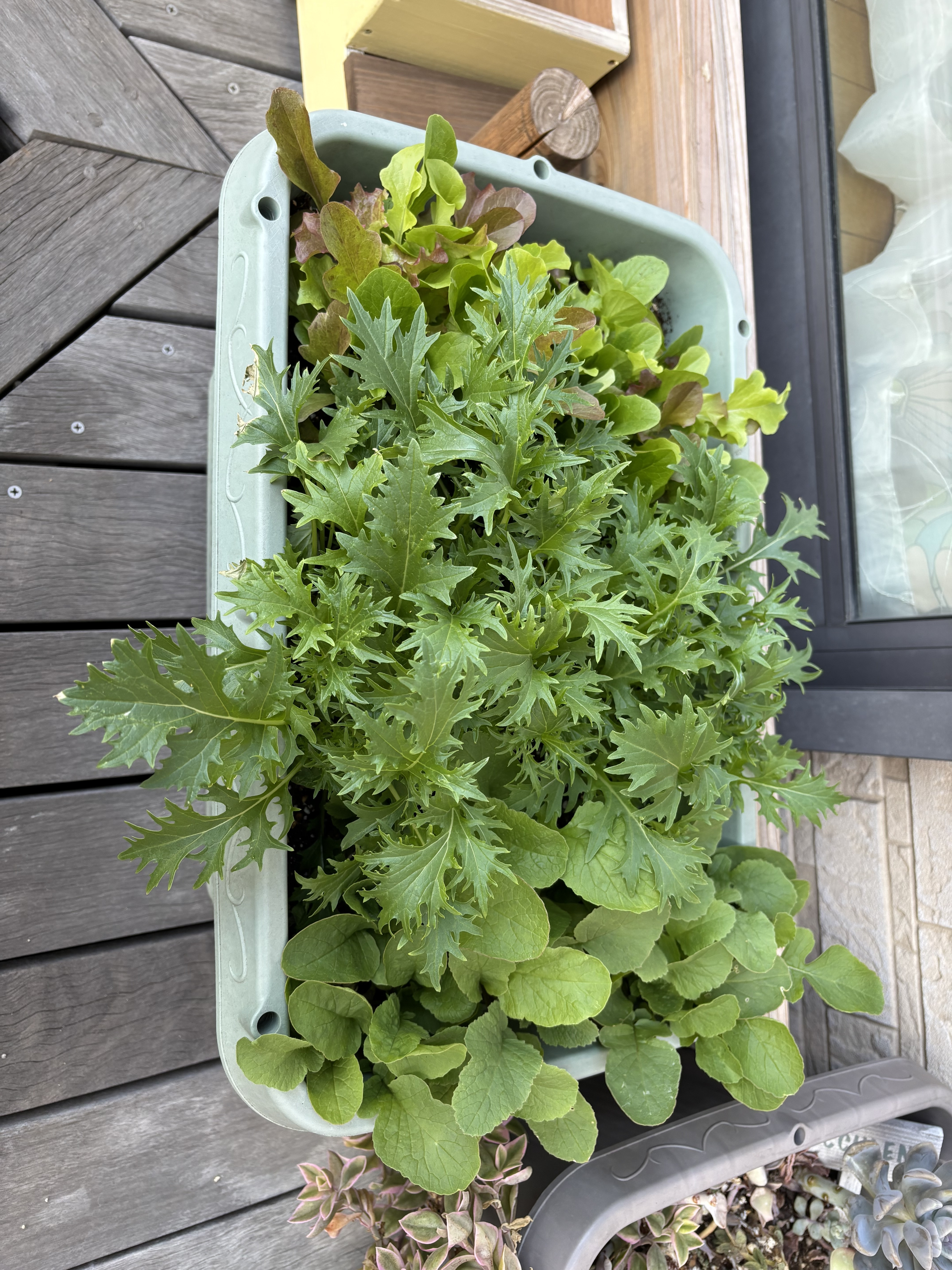 トップ > 秋冬家庭菜園2025 > キャンペーン > 種から育てたおやさいハウスのその後 やこ 2025/12/01 09:27 種から育てたおやさいハウスのその後 ■育てた野菜 サニーレタス、ラディッシュ、春菊 ■エピソード(チャレンジしたきっかけなど) 10月12日のWS(種から育てたおやさいハウス) 参加後、苗が大きくなってきた10日後くらいに 45ℓの野菜プランターに植え替えました。 土は野菜専用の培養土 間引きをしなくてはいけなかったのですが、WSで植えた時のままを植え替えています そろそろ収穫したいです はじめてチャレンジ部門_秋冬家庭菜園2025 いいね 共有する 共有する X LINE リンクをコピー コメントする 3 件の返信 (新着順) ミュートしたユーザーの投稿です。 投稿を表示 チコリ 2025/12/02 01:53 元気に育ってますね! 種からここまで大きく育つなんて、なんだか不思議です😊 いいね 返信する ミュートしたユーザーの投稿です。 投稿を表示 やこ 2025/12/03 21:52 チコリ 途中で枯らしちゃったっていうのも ちょくちょく聞きます。 早め(種まきから10日後)に植え替えたのがよかったのでしょうかね? 小さな種が大きく育つ不思議を感じます いいね 返信する ミュートしたユーザーの投稿です。 投稿を表示 ぷぅ 2025/12/01 21:02 おー、すくすくと育ってますね〜 いいね 返信する ミュートしたユーザーの投稿です。 投稿を表示 やこ 2025/12/01 22:05 ぷぅ 明日サラダ🥗にします ラディッシュの葉はちょっとかじったけど食べられませんね! 胡麻油でい炒めたら美味しいのかしら😋 いいね 返信する ミュートしたユーザーの投稿です。 投稿を表示 りかちゃん 2025/12/01 17:17 我が家も水菜が育ってきました 間引きついでに少し収穫しても良いみたいです なんといっても新鮮ですよね🎵 いいね 返信する ミュートしたユーザーの投稿です。 投稿を表示 やこ 2025/12/01 19:09 りかちゃん 葉っぱ類は間引きしなくてもなんとか育っている気はします。少し葉っぱちぎってみます。ラディッシュは1つ抜いてみましたが1センチくらいぷっくりしていましたが、売り物の様なラディッシュになっていません😅 いいね 返信する ミュートしたユーザーの投稿です。 投稿を表示 りかちゃん 2025/12/01 19:19 やこ ラディッシュ、今まで一度も丸くなったことがないんです😓 今度こそ! いいね 返信する ミュートしたユーザーの投稿です。 投稿を表示 やこ 2025/12/01 21:04 りかちゃん ラディッシュ丸くなる秘訣とかあるのでしょうかね?! わからないことだらけですね 不思議な世界(野菜)です いいね 返信する ミュートしたユーザーの投稿です。 投稿を表示 りかちゃん 2025/12/02 08:25 やこ 根が赤くはなってきてます これから丸くふくらんでくるはず😊 いいね 返信する