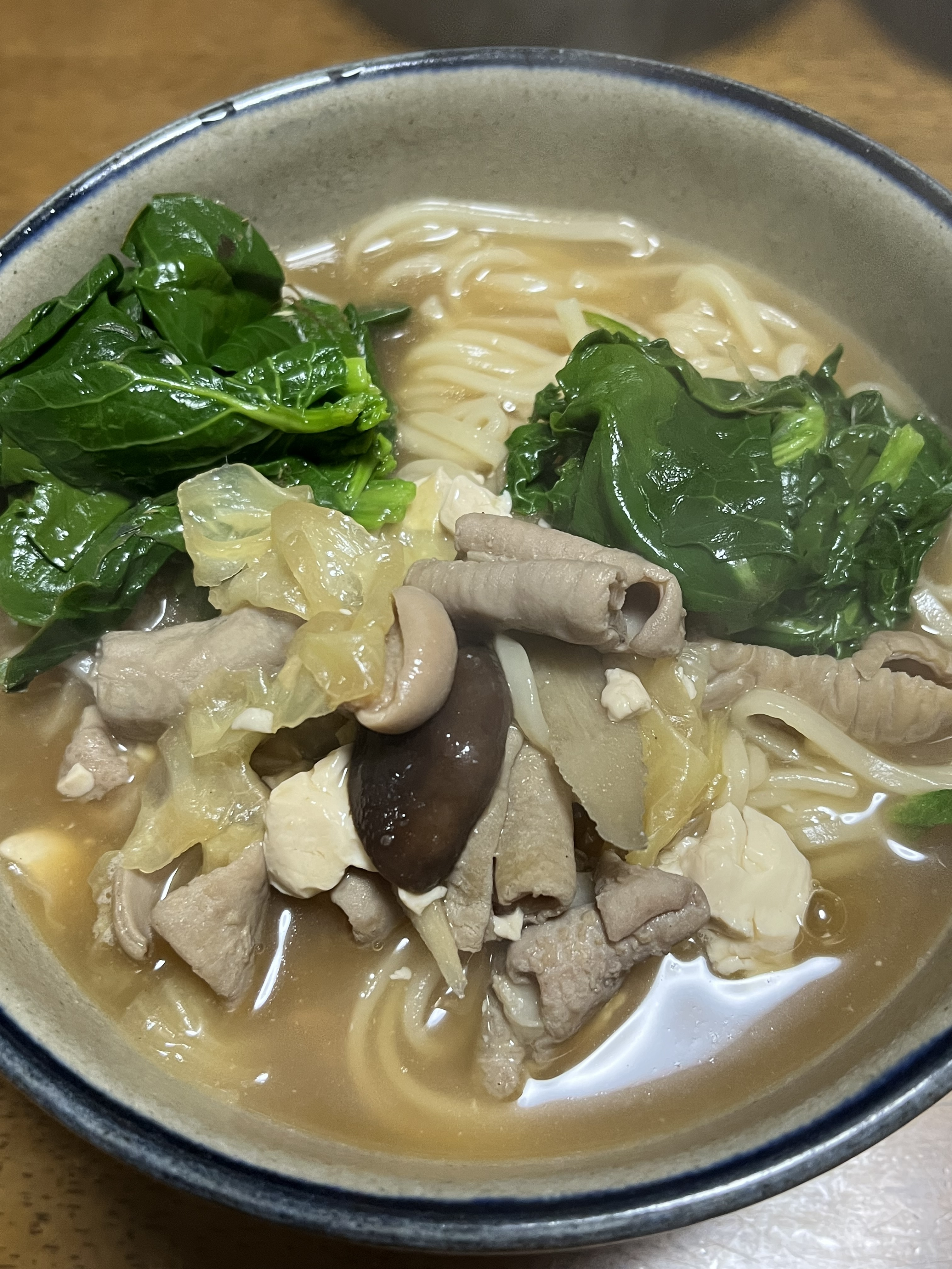 もつ鍋の後のおうどんで、身体もぽかぽかですね😃