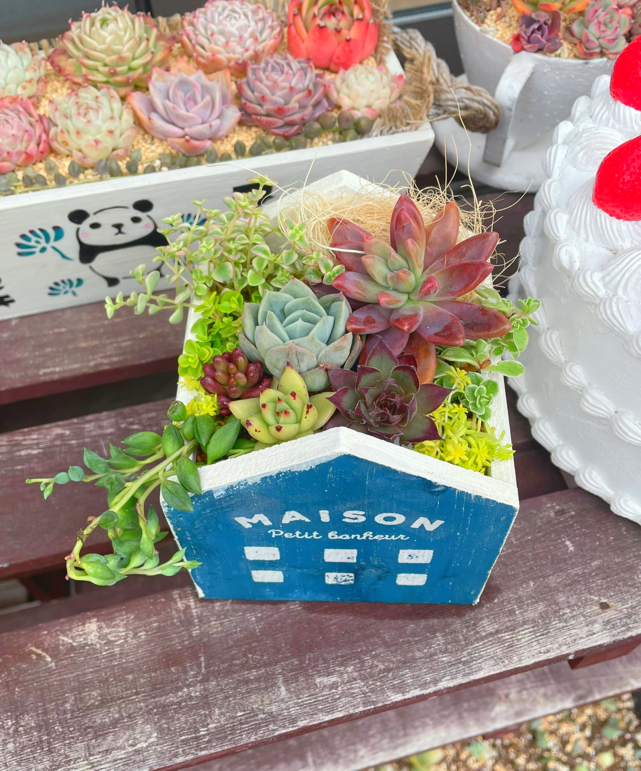 こちらの寄せ植えは、義母がお友達にあげたいから寄せ植え作って〜とご要望にがあったので寄せてみました。多肉を育てる経験のない方でも育てられるように、出来るだけ丈夫で強い多肉ちゃんたちを選びました😊