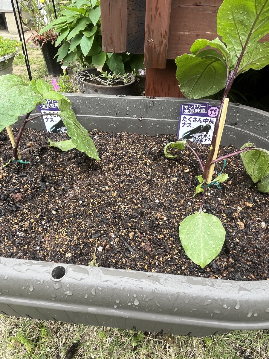 トップ > グリーン > ナスの苗を植えました toshi 2024/04/27 10:28 ナスの苗を植えました この先、天気が崩れそうだし小雨が降ってきたので急遽買ってきたナスの苗を植えました。プランターに2株ずつ植えました。サントリーでもナスの苗売っているんですね。初めて知りました。ちょっとお高いかも知れません。収穫が楽しみです。 いいね 共有する 共有する X LINE リンクをコピー コメントする 1 件の返信 (新着順) ミュートしたユーザーの投稿です。 投稿を表示 シン ひよっこ 葵 2024/04/27 18:46 toshiさん、こんばんは なす、たのしみですねぇ✨ すでに私の頭の中は、たわわに実って、毎日食べる楽しみでいっぱいです(人´ω`) いいね 返信する ミュートしたユーザーの投稿です。 投稿を表示 toshi 2024/04/28 06:33 シン ひよっこ 葵 楽しみです。焼きなすかな、それともパスタかな、今からは早いですね。 いいね 返信する