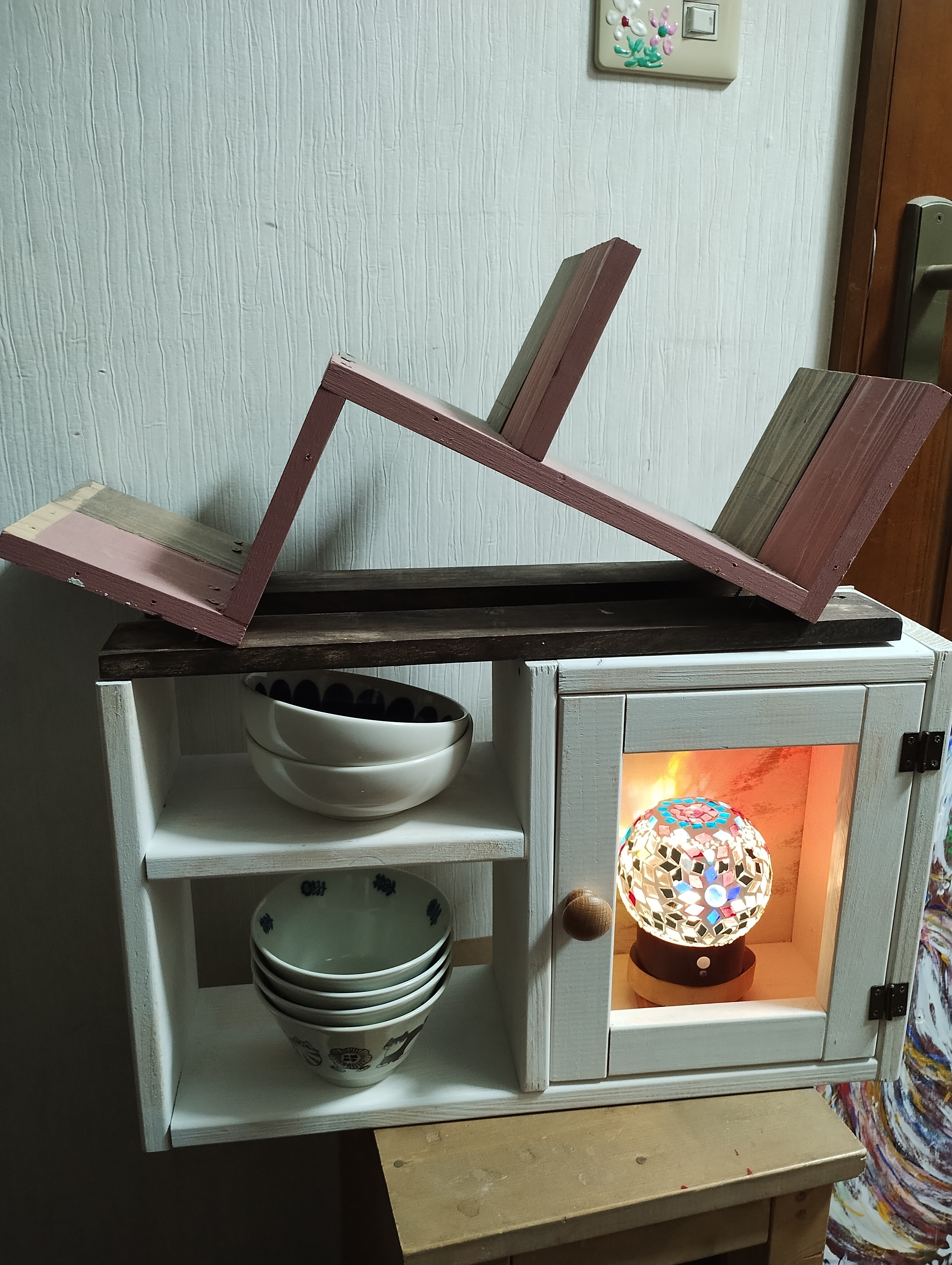 トップ > ワークショップ > 棚・収納 > ストレージシェルフアレンジ きゃな 2026/02/19 18:34 ストレージシェルフアレンジ もともと使っていたお皿ラックを上にのせて使うことにしました! これで収納力とコレクションを同時に出来ました! いいね 共有する 共有する X LINE リンクをコピー コメントする 7 件の返信 (新着順) ミュートしたユーザーの投稿です。 投稿を表示 suimo 2026/02/20 08:36 このように使うのも素敵ですね。ぴったりサイズで良かったですね🪔 いいね 返信する ミュートしたユーザーの投稿です。 投稿を表示 きゃな 2026/02/20 21:05 suimo すてようwと思ったのですが 上にのせたらいい感じでした✨ いいね 返信する ミュートしたユーザーの投稿です。 投稿を表示 とも 2026/02/20 05:53 トルコランプを飾るのもステキですね♡ いいね 返信する ミュートしたユーザーの投稿です。 投稿を表示 きゃな 2026/02/20 06:11 とも ありがとうございます😊💓 調度よく入りました! いいね 返信する ミュートしたユーザーの投稿です。 投稿を表示 ゆりさん 2026/02/19 22:47 かわいいです💞 いいね 返信する ミュートしたユーザーの投稿です。 投稿を表示 きゃな 2026/02/19 23:21 ゆりさん ありがとうございます😊💓 思わずくっつけて良かったです😊💓 いいね 返信する ミュートしたユーザーの投稿です。 投稿を表示 mi 2026/02/19 21:48 私も作りたいのでリクエストしてきました😆👍 いいね 返信する ミュートしたユーザーの投稿です。 投稿を表示 きゃな 2026/02/19 22:04 mi とっても素敵ですよ💕 ぜひとも作ってほしいです😊💓 いいね 返信する ミュートしたユーザーの投稿です。 投稿を表示 ゆうちゃん 2026/02/19 20:22 私も予約しました。 難しかったですか? いいね 返信する ミュートしたユーザーの投稿です。 投稿を表示 きゃな 2026/02/19 20:30 ゆうちゃん 難しくないです😊💓 アクリルつけるときは慎重でしたが いいね 返信する ミュートしたユーザーの投稿です。 投稿を表示 ゆうちゃん 2026/02/19 20:50 きゃな 勉強になります。作る時の参考にさせていただきます🤗 いいね 返信する ミュートしたユーザーの投稿です。 投稿を表示 ラムちゃん 2026/02/19 19:38 きゃなさんみたいに ホワイトの汚しをいつかしてみたいと 思うのですが😊 失敗すること間違いなしなので💦 (私は厚塗り系になってしまう🤣) 手を出せないですが いつかチャレンジしてみたいです😍 今日はご一緒出来て良かったです💓 いいね 返信する ミュートしたユーザーの投稿です。 投稿を表示 きゃな 2026/02/19 19:44 ラムちゃん ラムちゃんさん今日はご一緒出来て良かったです✨ B&Bで慣れているのでついついカスカスでいいと思っちゃうんです✨ 木目もだしたいと思うとこのカスカスです✨ アクリルは外しました トルコランプがすっぽり収まって 私のコレクションの作品になりました✨ いいね 返信する ミュートしたユーザーの投稿です。 投稿を表示 ラムちゃん 2026/02/19 20:26 きゃな アクリル外して トルコランプが 灯してくれてますね🤍🤍🤍 🤍素敵です🤍 いいね 返信する ミュートしたユーザーの投稿です。 投稿を表示 きゃな 2026/02/19 20:32 ラムちゃん ありがとうございます😊💓 アクリル板もう仕分けなかったですが 中を見せる収納にしたかったので いいね 返信する ミュートしたユーザーの投稿です。 投稿を表示 みっきい 2026/02/19 19:22 ランプが飾られていて素敵です🎶 いいね 返信する ミュートしたユーザーの投稿です。 投稿を表示 きゃな 2026/02/19 19:45 みっきい ありがとうございます😊💓 センサーライトなのでぴったり収まり 光ってくれて良いです😊💓 いいね 返信する