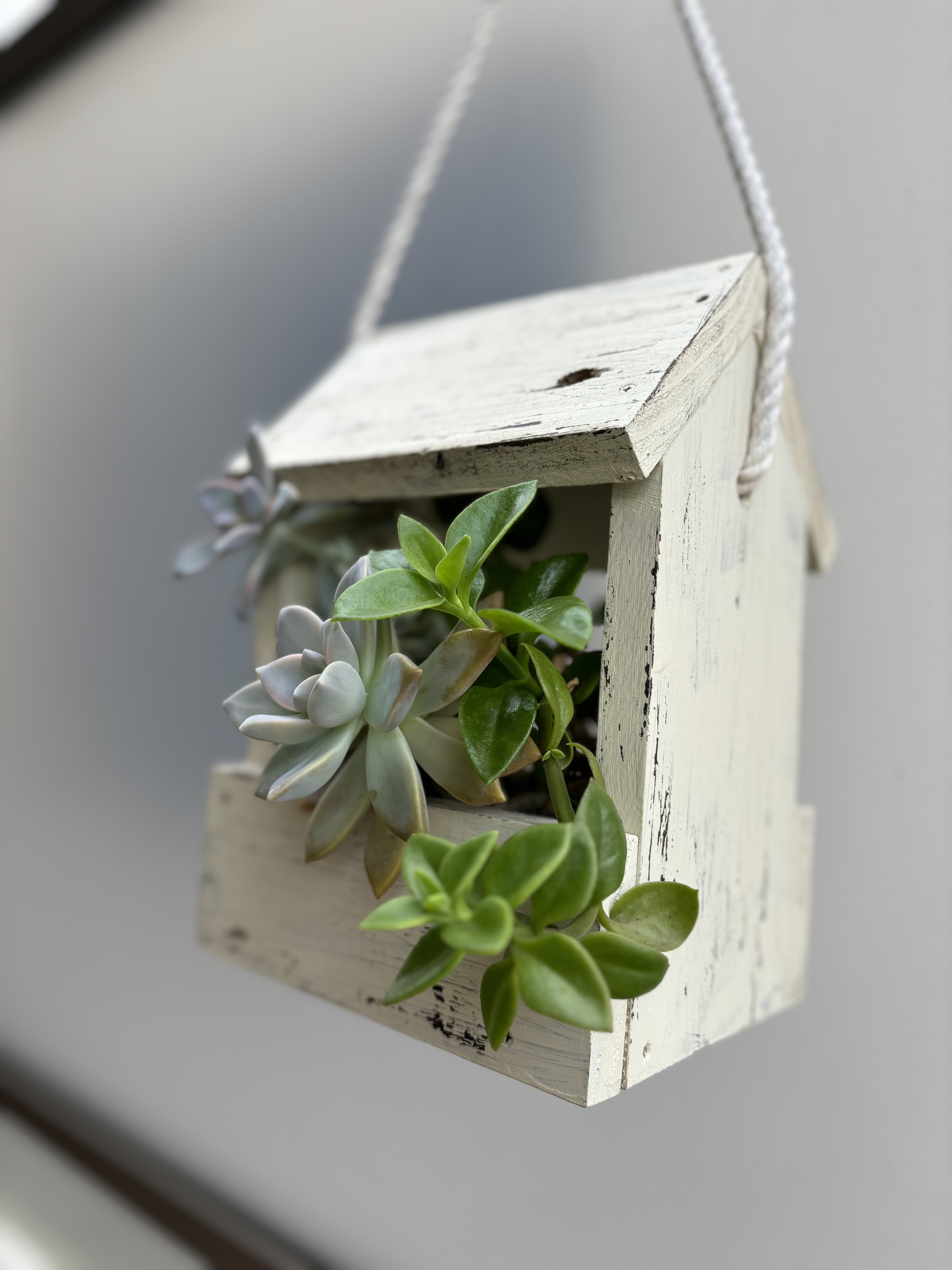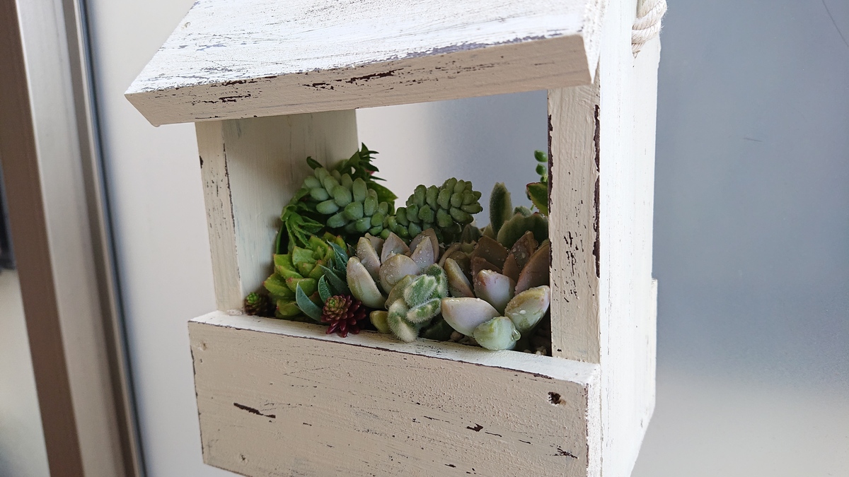 投稿を表示お家型の木鉢が,可愛い🩷多肉ちゃん、大きくなりましたね✌️
