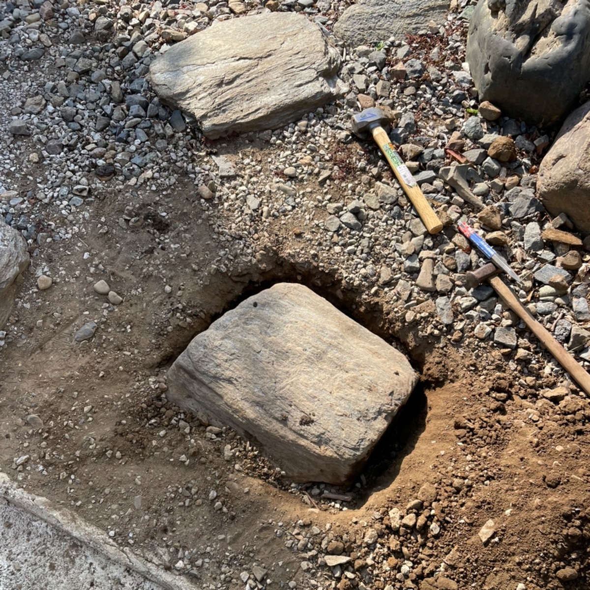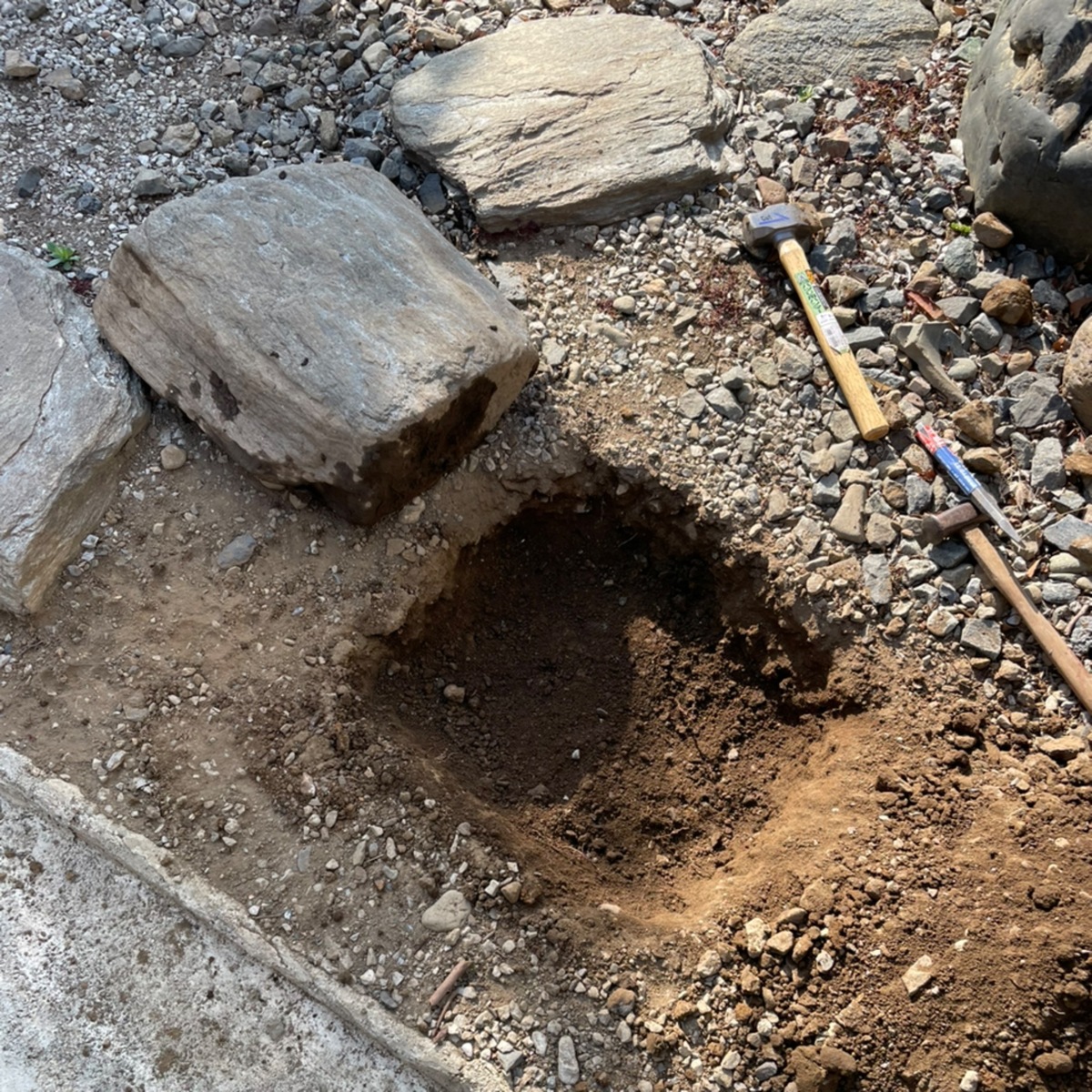トップ > DIY > エクステリア > 飛び石を追加 ソラ5551 2023/03/09 00:02 飛び石を追加 ↑after ハツリ工具を総動員して飛び石を追加しました。 硬い地面は、砂利や小石やコンクリ材など様々な材が紛れてて苦戦必死ですが、コレがあるとないでは足の運びが大分変わるので。 以下、施工の流れを画像で。 ここからスタート。→の片口ハツリハンマーが良い仕事してくれました。↓ 飛び石を用意して大きさ確認しながら、掘り出します。↓ 仮置き。↓ なるべく隙間を作らないように周りを埋めてゆきます。この後、水洗いしてアイキャッチ画像のようになりました。 いいね 共有する 共有する X LINE リンクをコピー コメントする 0 件の返信 (新着順)