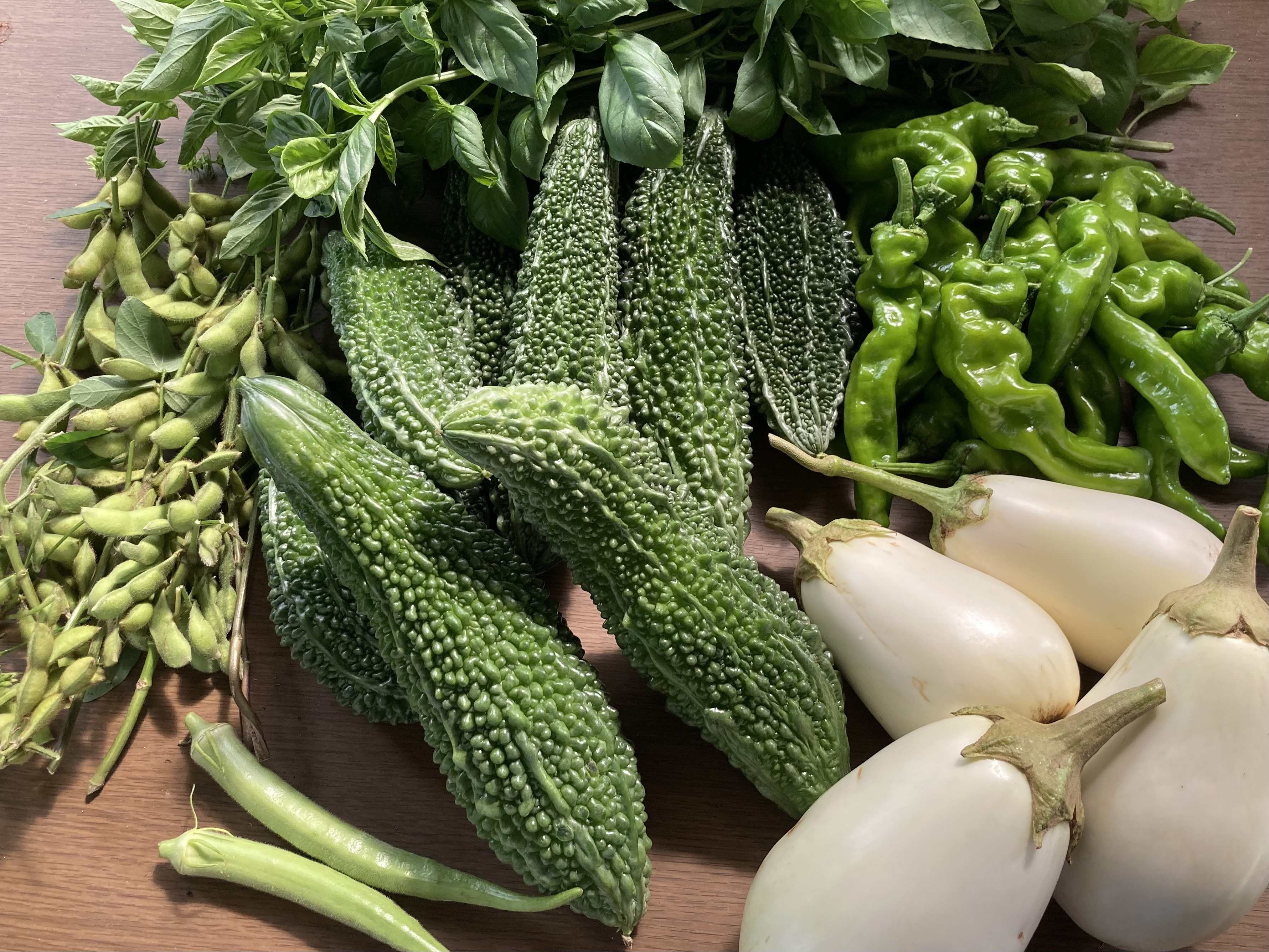我が家もナス、オクラ、ピーマン、ししとう、ゴーヤ、バジルは収穫出来ていますが、かずん程ではありません😅