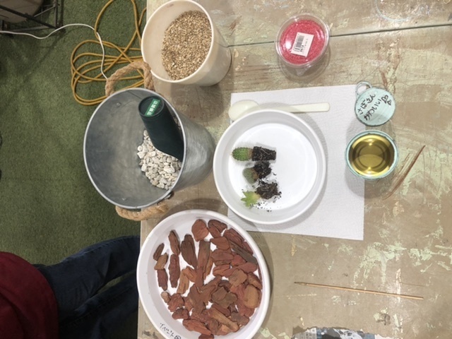サボさんの土を缶の半分位かな?入れて、サボさんの場所を決めてピンセットで投入😅
