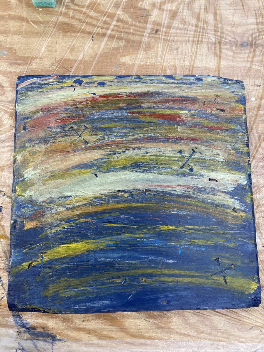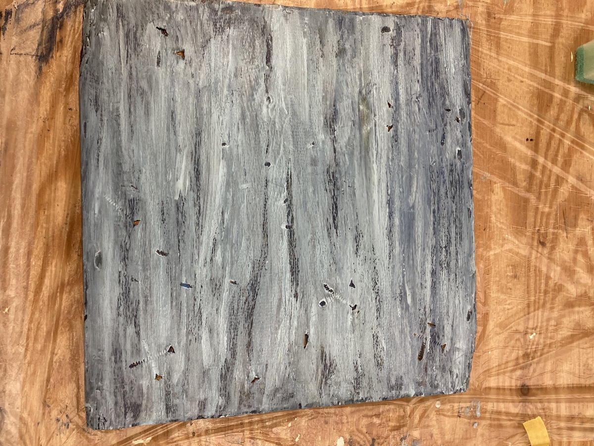 ↓塗り具合は、こんな感じで、重ねていき。。 わたしは、カラーを重ねる時は、スポンジではなく、ウエスを使っています