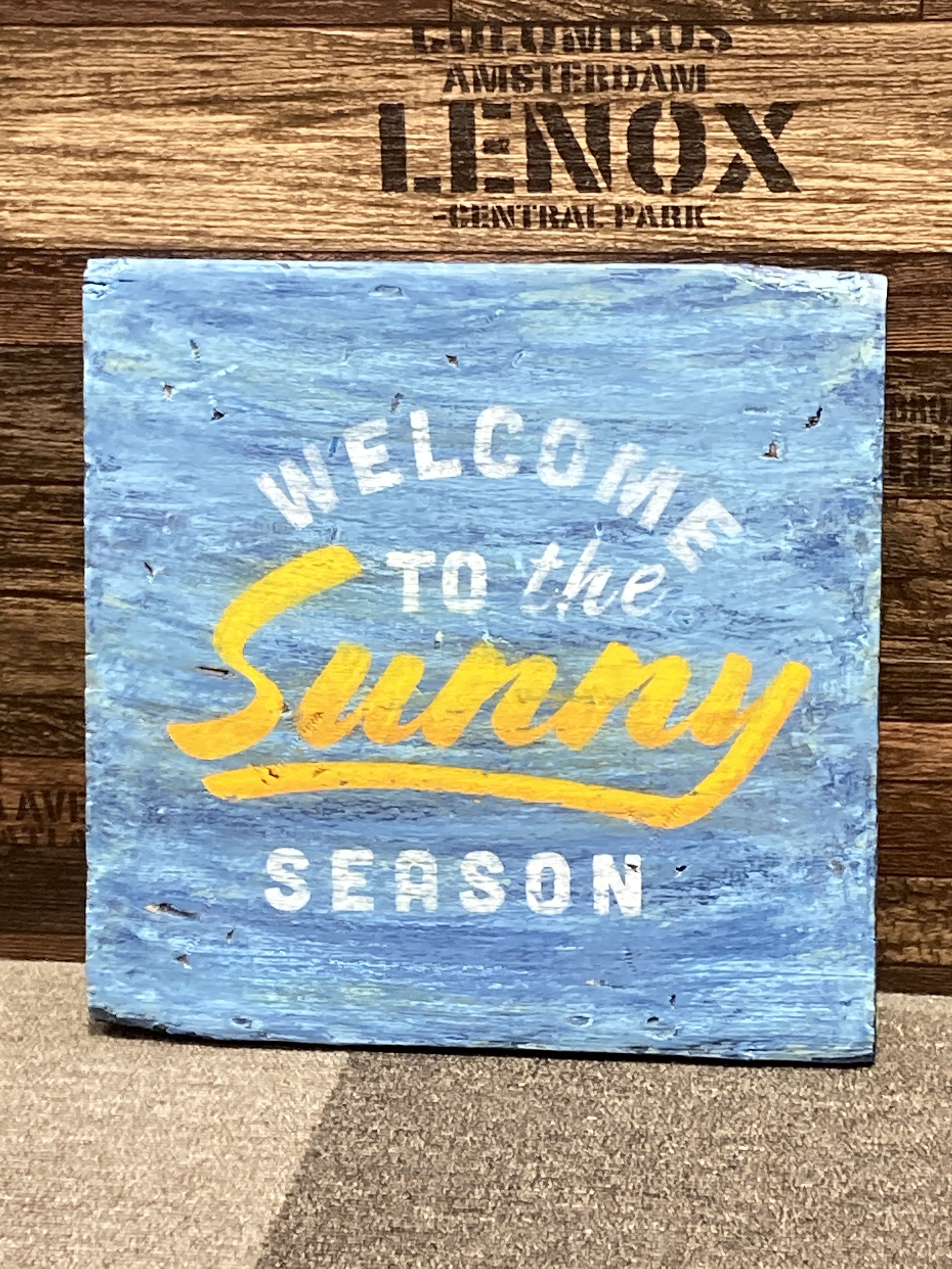 ステンシル文字はパーフェクトホワイト、太陽を表現するsunnyはイエローとキャロットオレンジの2色でグラデーションをかけ。。。