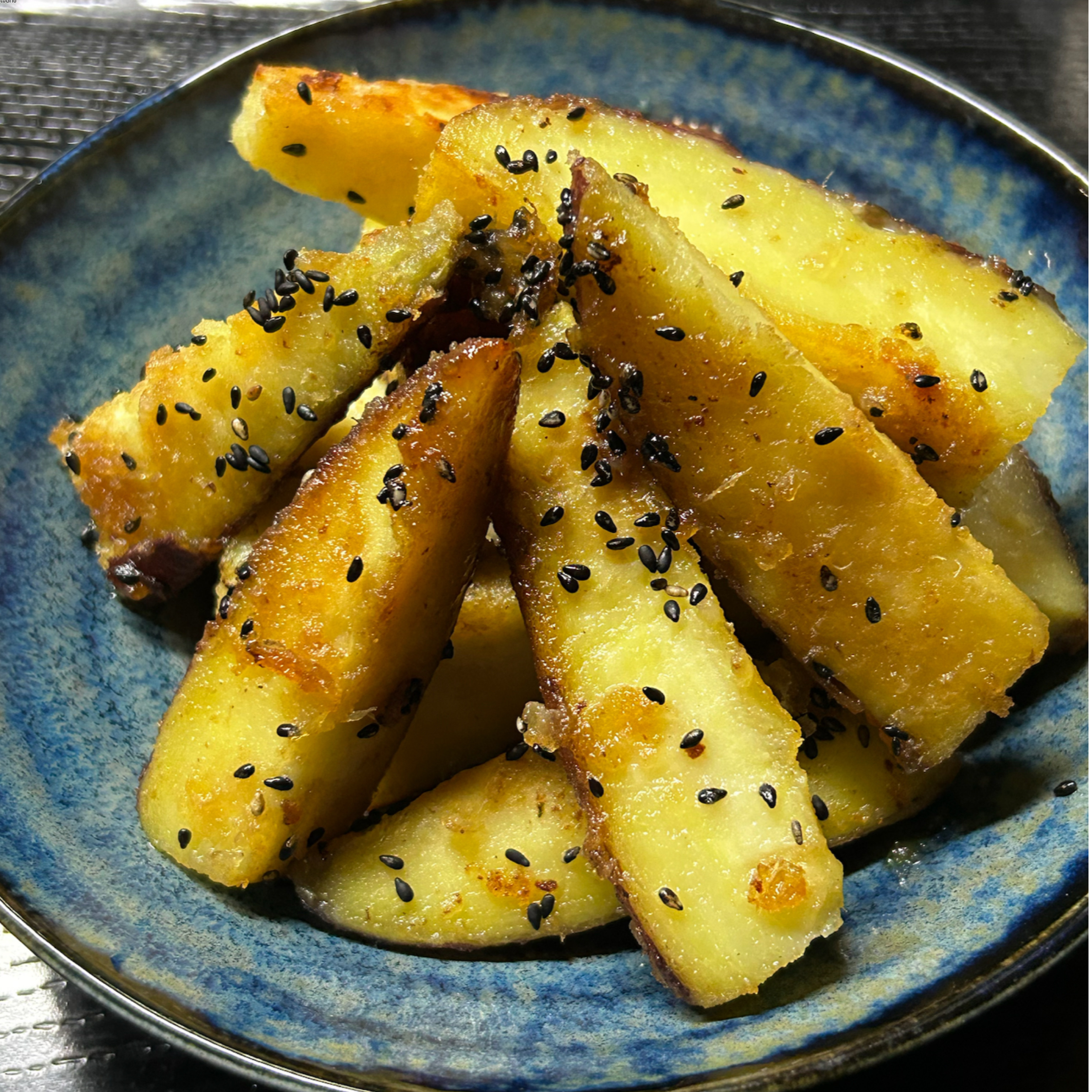 最後に、黒ゴマを振りかけて、ざっくり混ぜ、なんちゃって大学芋の出来上がりです😊