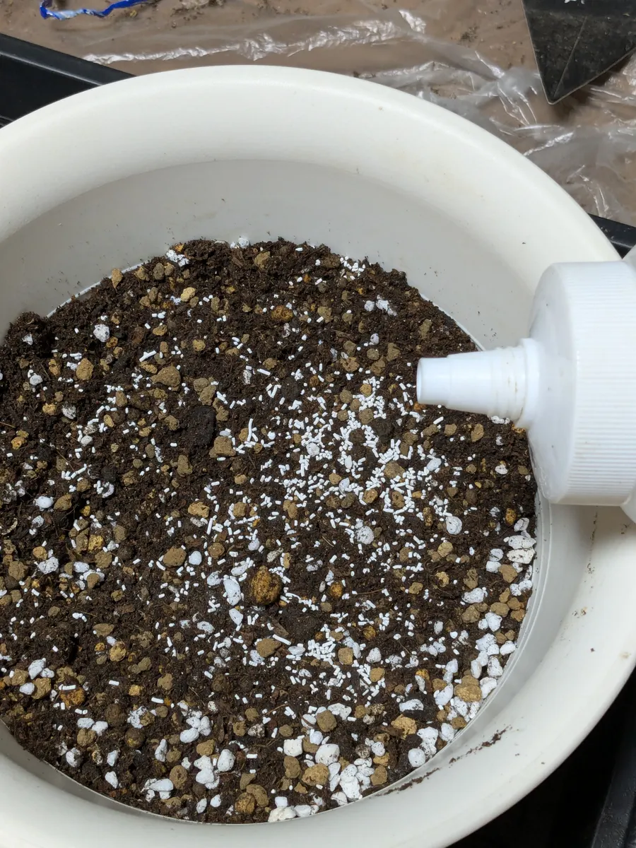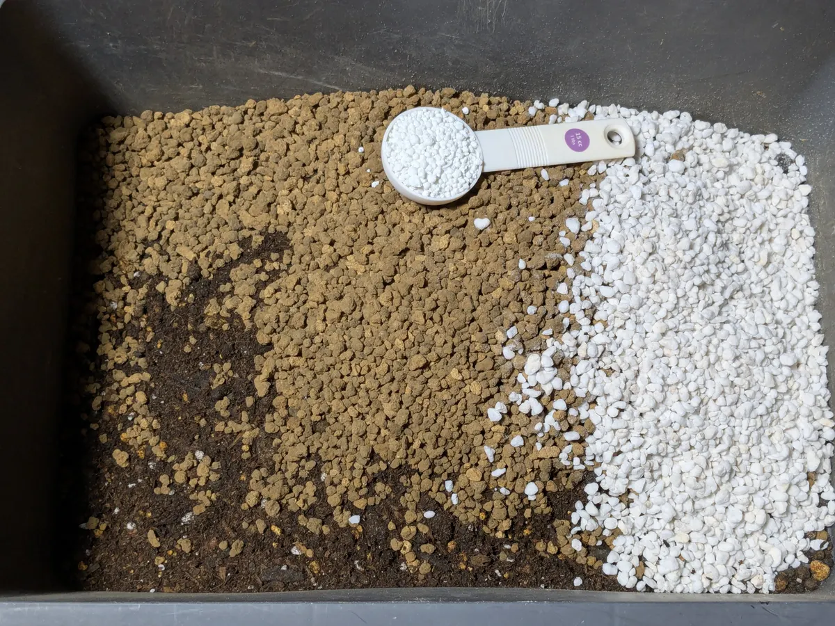 培養土と赤玉土、そして最近はパーライトを少し入れています。(水はけをよくするため)+マグアンプ