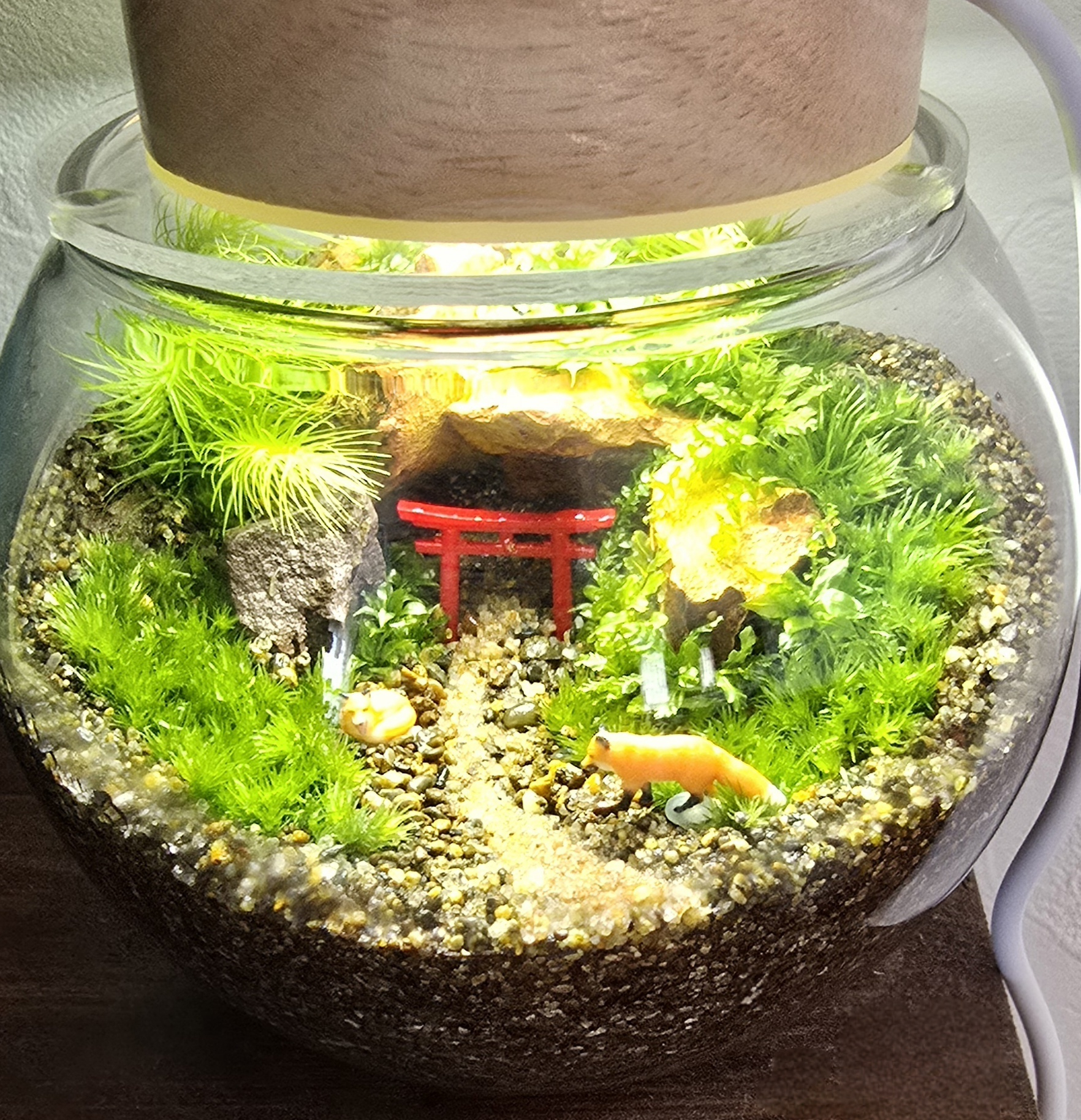 ・石を使って洞窟を造り、ちょっぴり神秘的な雰囲気にしたかったので、洞窟の中に鳥居⛩️のミニチュアフィギュアを配置しました✨️