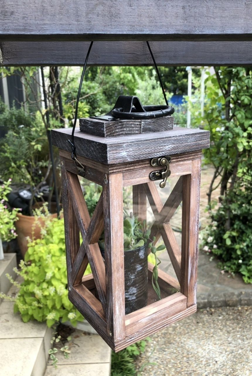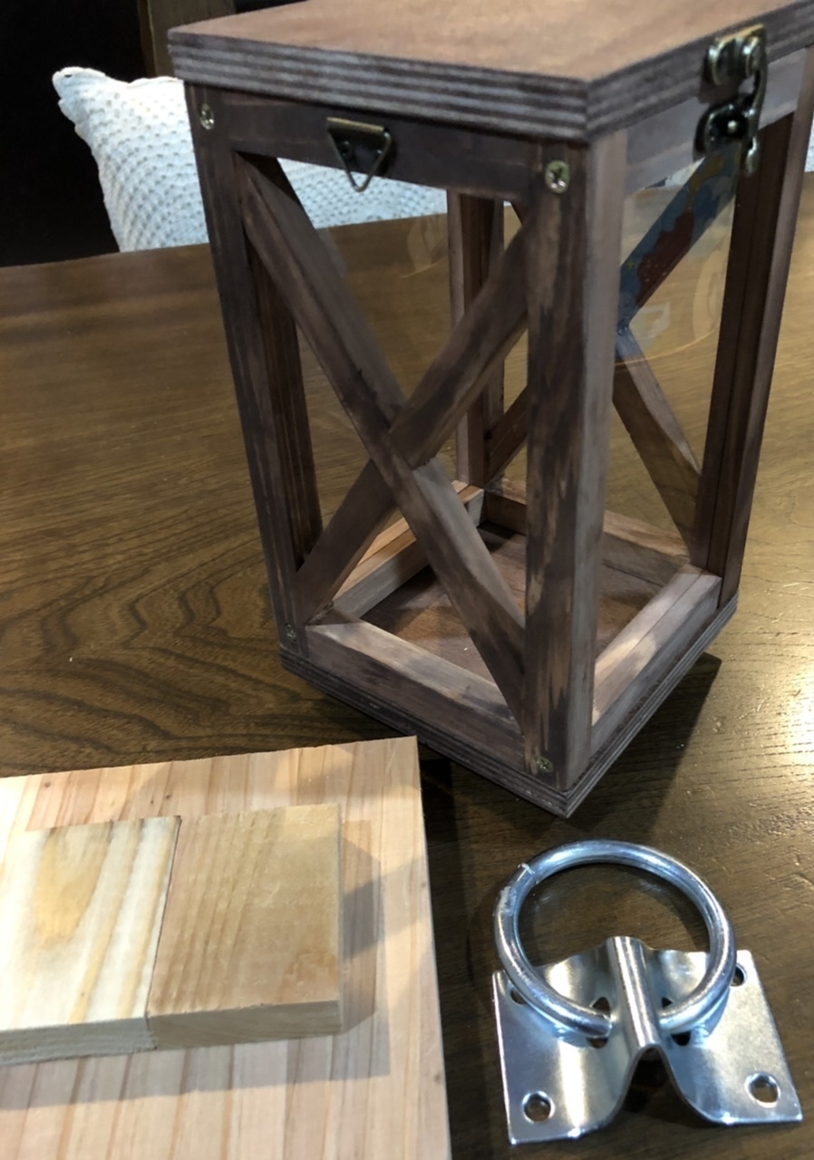 アンティーク調木製ランタンケースに近づけたくて、帰りに金具を購入