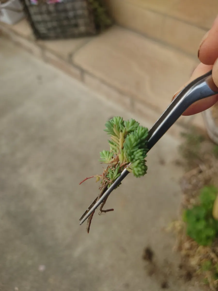 枯れ葉を取ったらかなりスカスカに💦空いてしまったスキマにセダムを入れます👀✨