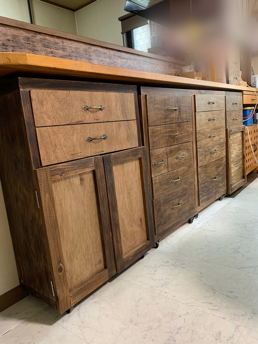 トップ > DIY > インテリア > カウンター下収納 CHIE☆ 2024/04/27 11:33 カウンター下収納 友達の家へ出張diy🪚 カウンター下に収納を作りまくりました‼️ 今回は引き出し2段✨下の扉の中は棚板1枚です 写真撮り忘れました💦 これでカウンター下が埋まりました😊 いいね 共有する 共有する X LINE リンクをコピー コメントする 1 件の返信 (新着順) ミュートしたユーザーの投稿です。 投稿を表示 たーたん 2024/04/27 12:10 アンティーク調でカッコイイ👍 キャスターも付いて 使いやすく🧹大掃除も楽ちんですね😄 私は引き出しが難しいので😢出来ないんですが奥の物も取り出しやすく便利ですよね🤩 いいね 返信する ミュートしたユーザーの投稿です。 投稿を表示 CHIE☆ 2024/04/27 12:42 たーたん ありがとうございます😊 引き出し作ってみると意外と簡単ですよ✨ 最近は引き出しの支えを板にしないで角材にしてます👍木材の節約にもなります😂 いいね 返信する