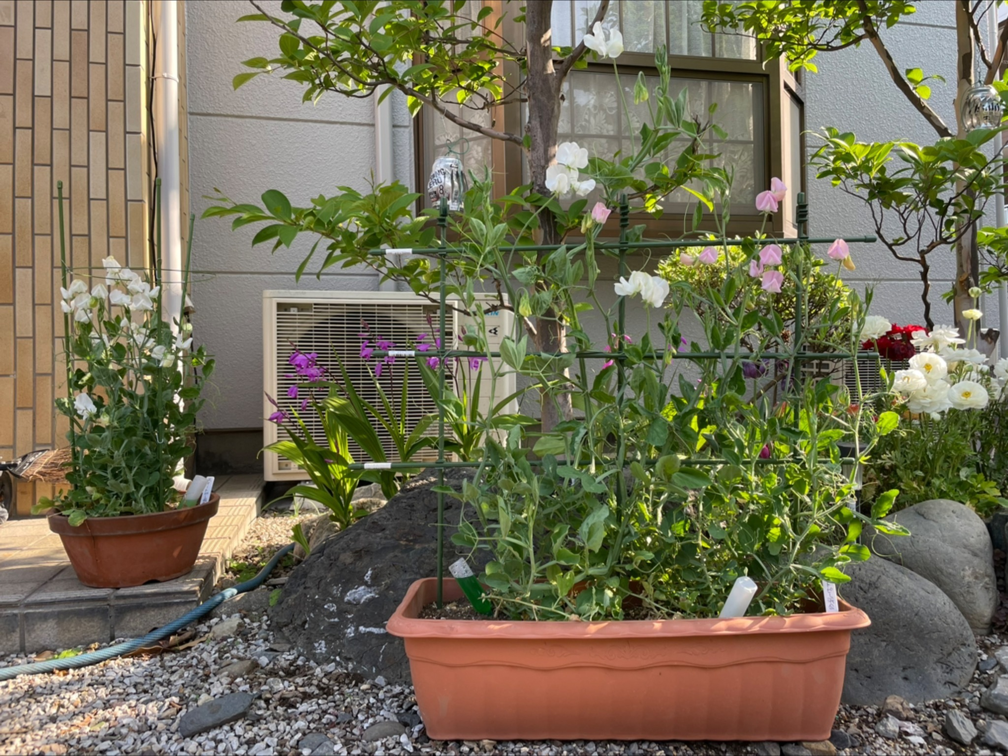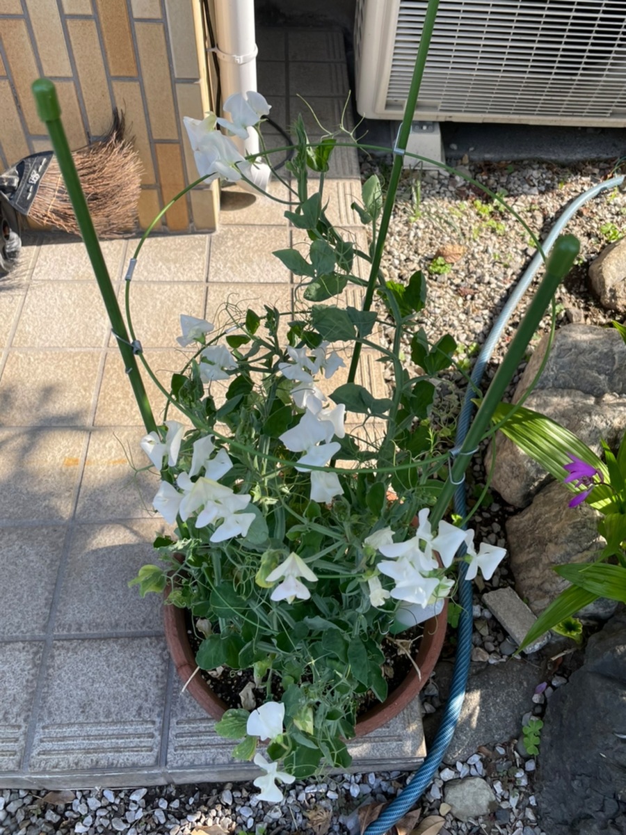 4月3日投稿のスイートピーの種育(リンク→ https://diy-square.cainz.com/announcements/sveszqttlrwssl8w )で、スイートピーは支柱を立てた方が良いとハナミズキさんに伺って、見よう見まねでやってみました。