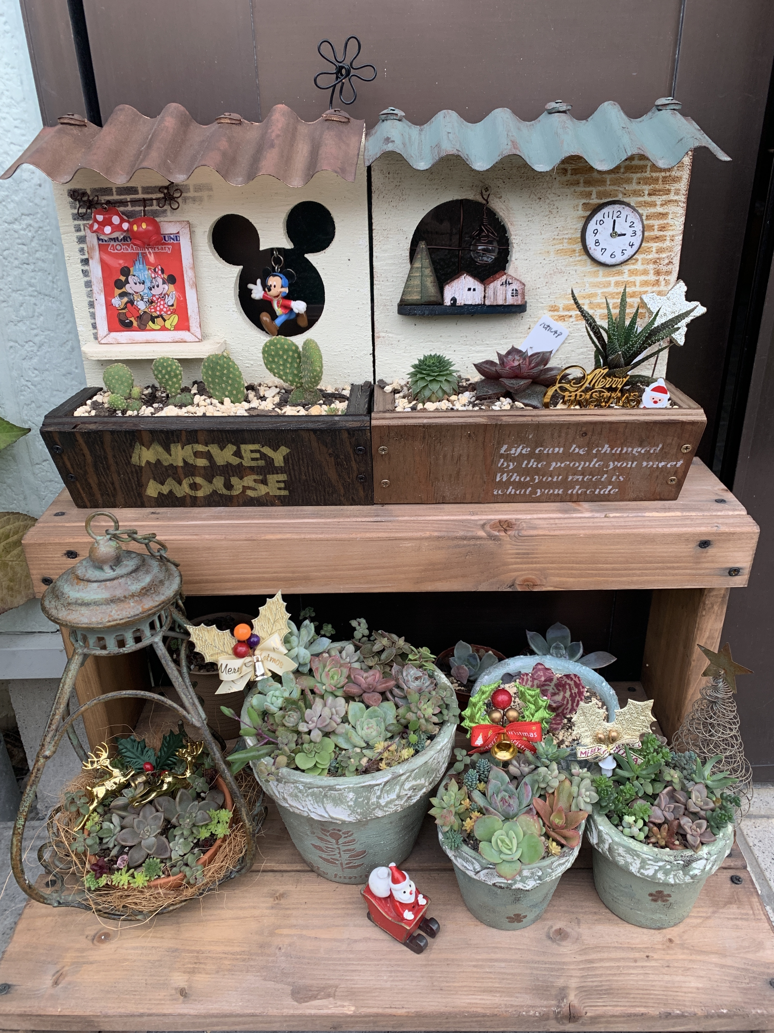 投稿を表示🎄可愛いプランター、リメイク鉢に多肉や🌵サボちゃん🩷ずっと眺めていたいコーナーですね🥰🫶