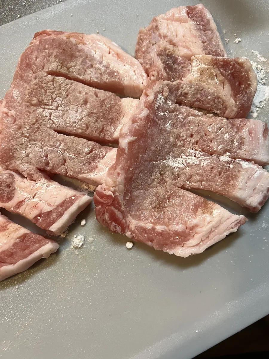 あらかじめ、小麦粉をお肉にうっすらと振っておくことでタレがお肉に絡まりやすくなります。
