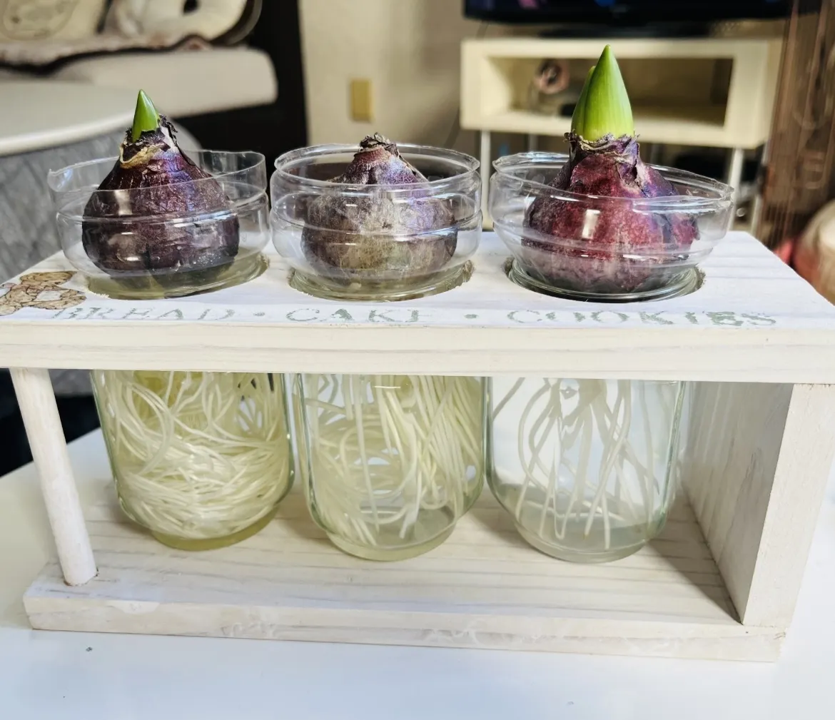 この時期に芽を出してきたということは、この球根は来年2月下旬あたりから花が咲く可能性大なのではないかしら。他のふたつはまだなのね。全部芽が出るといいなぁ🌱✨昨年より少し小ぶりになるとは思うけど、これからの育ちが楽しみねー🤭🪻💕