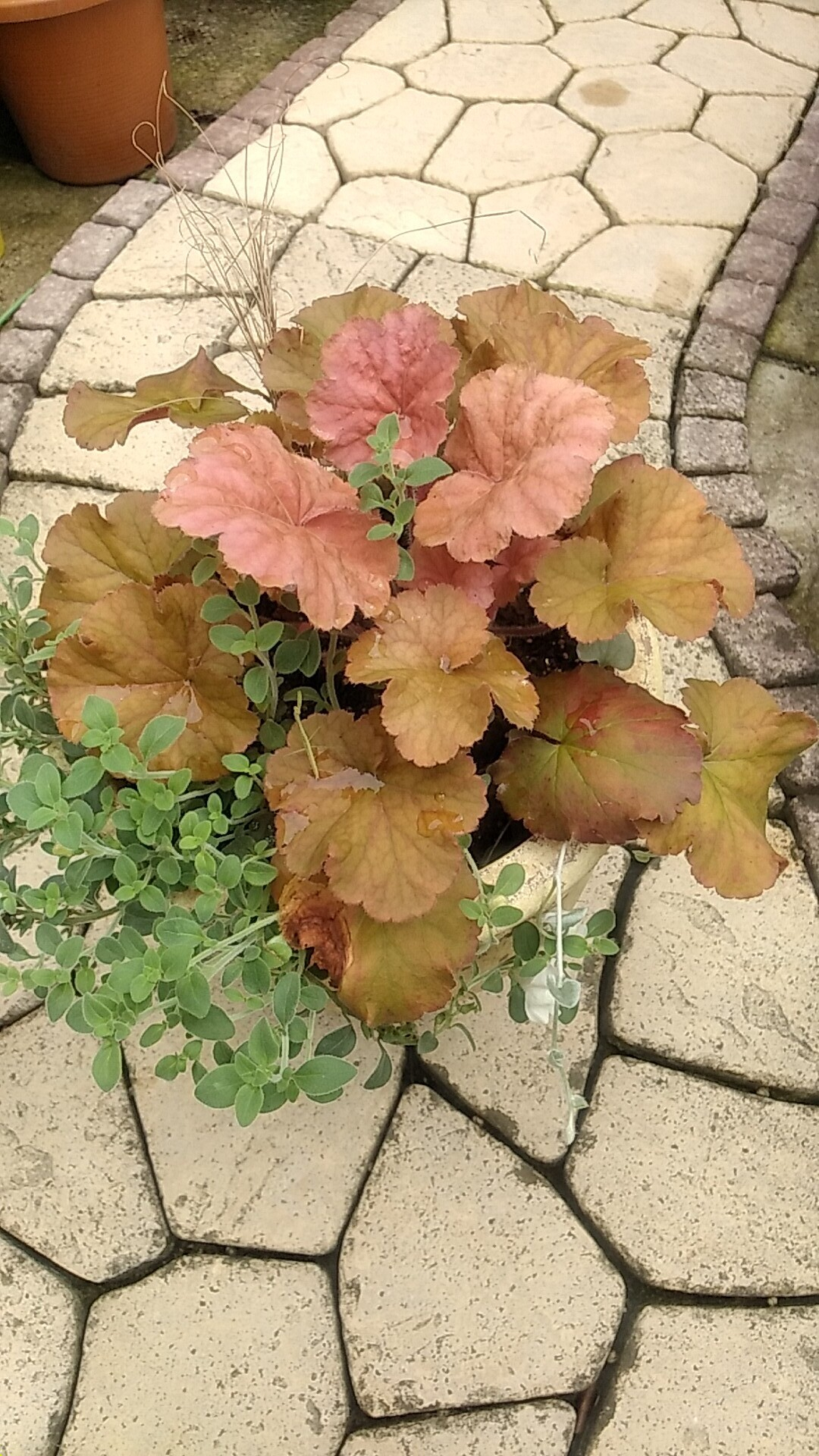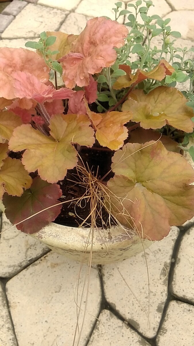 トップ > グリーン > レンガ色の鉢に寄せ植え あにー 2023/06/19 20:29 レンガ色の鉢に寄せ植え 5月半ばに娘からプレゼントされたヒューケラ どんな寄せ植えにしようか考え、カインズで以前購入したレンガ色の鉢に ・ヒューケラ ・宿根金魚草シルバーリーフ ・ディコンドラシルバーフォールズ ・赤系カレックス を植え、なんとなく落ち着いてきたので投稿します。 白い花の金魚草の上をディコンドラが鉢を飛び出して横切る!4等分したので痩せっぽちになったカレックス、ヒューケラの葉の間から「こんにちは!」金魚草は「助けてあげて!」と言われて貰ってきました😆花代はカレックスの98円?だけでした😊 いいね 共有する 共有する X LINE リンクをコピー コメントする 2 件の返信 (新着順) ミュートしたユーザーの投稿です。 投稿を表示 はるおーん 2023/06/19 21:20 全部私の好きな花苗&リーフで素敵💕✨って思ってコメントさせていただいてます😊しかも一番最後の写真のバックに写っているギボウシ?も大好きです😆 カレックスは定着すると分けつしてどんどん立派になりますよ~🎵 いいね 返信する ミュートしたユーザーの投稿です。 投稿を表示 あにー 2023/06/19 21:59 はるおーん はるおーんさま💗 うれしくなるコメント💕ありがとうございます😊 植えてすぐは 「これでよかったか🤔?」 と考え込んでしまいましたが、馴染んできましたょ😍 ギボウシも褒めていただきありがとうございます🌿 こんな感じです💗つぼみがあがってきています! いいね 返信する ミュートしたユーザーの投稿です。 投稿を表示 はるおーん 2023/06/19 22:05 あにー わぁー💕すごく立派なギボウシそして多種に渡って✨うらやましいです😍ギボウシのお花もかわいいですよね🎵これからの季節、楽しみがたくさんですね👍 いいね 返信する ミュートしたユーザーの投稿です。 投稿を表示 あにー 2023/06/19 22:12 はるおーん 地植えできないのが残念ですが、毎年綺麗な葉っぱを伸ばして、サマーガーデンを飾ってくれます😊✌ いいね 返信する ミュートしたユーザーの投稿です。 投稿を表示 あにー 2023/06/19 20:30 カレックス4等分したので25円? いいね 返信する
