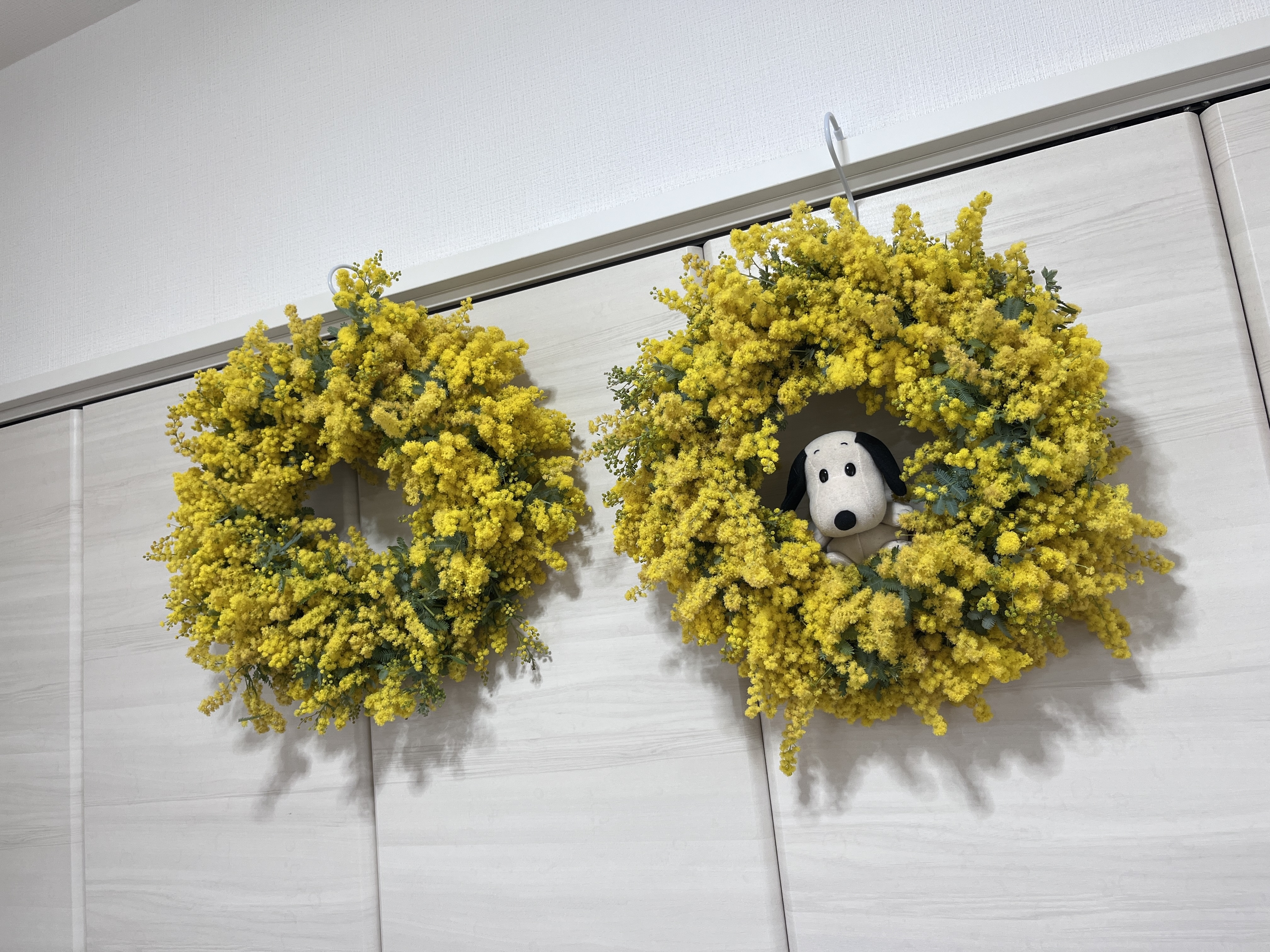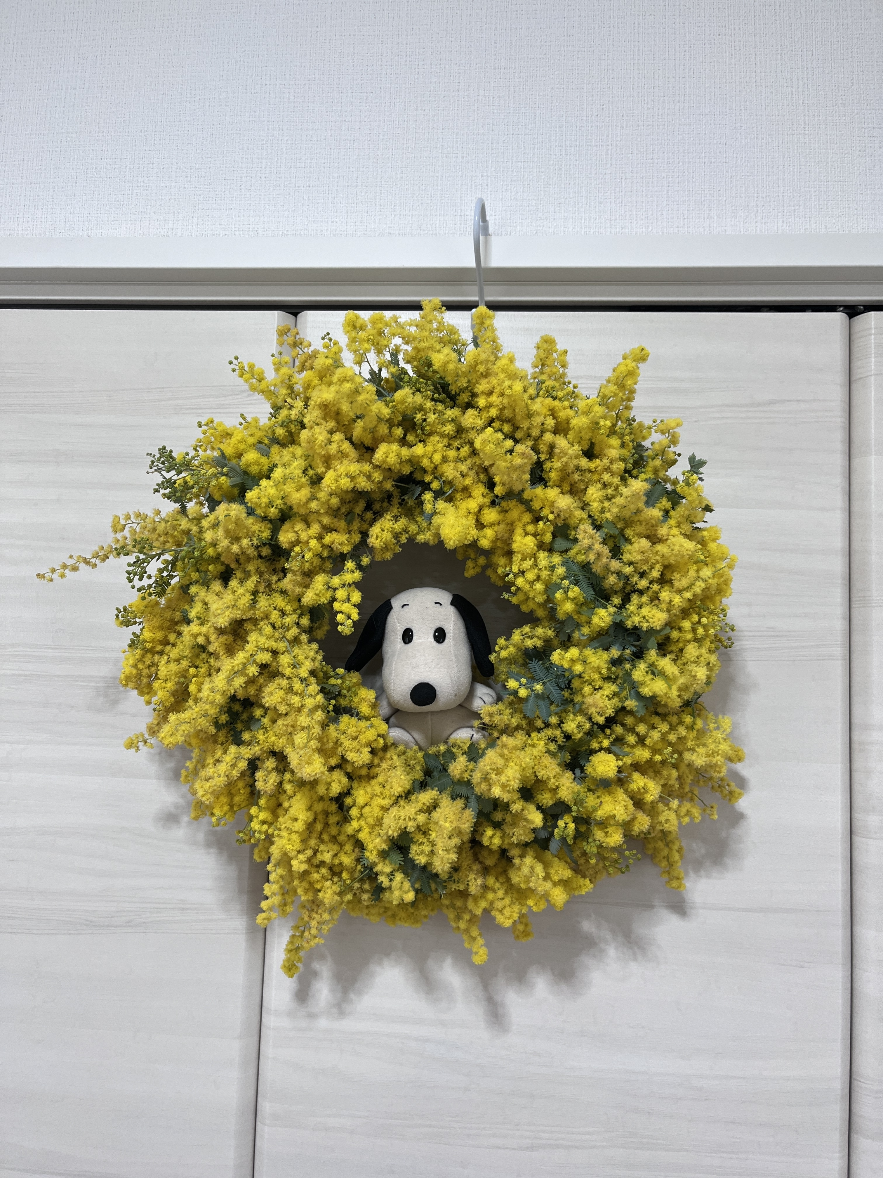 投稿を表示スヌーピーがのぞいているミモザのリース素敵ですね💓💓