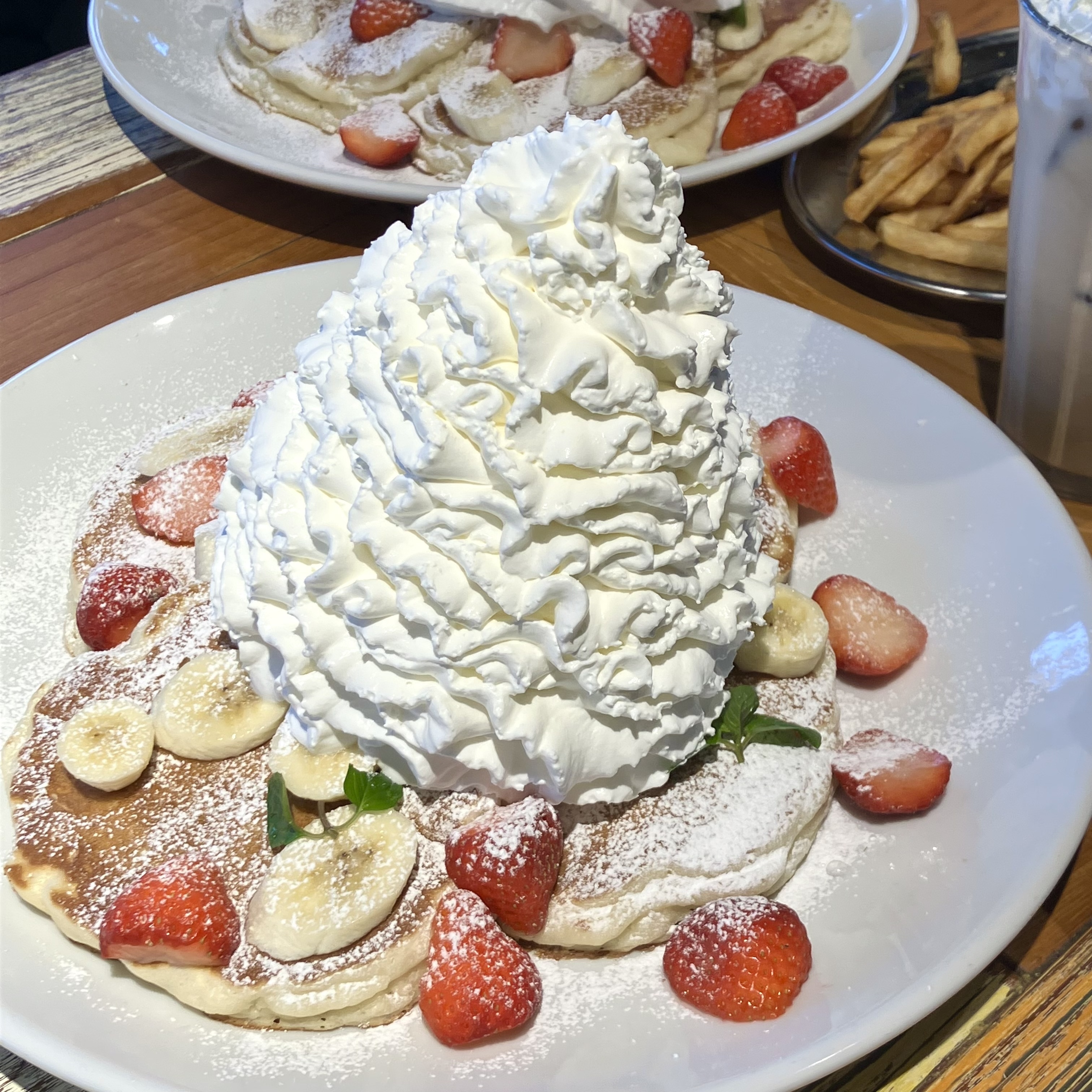 生クリームたっぷりのパンケーキ🥞…私の胃袋が勝手に食べる気満々になってる~🤣