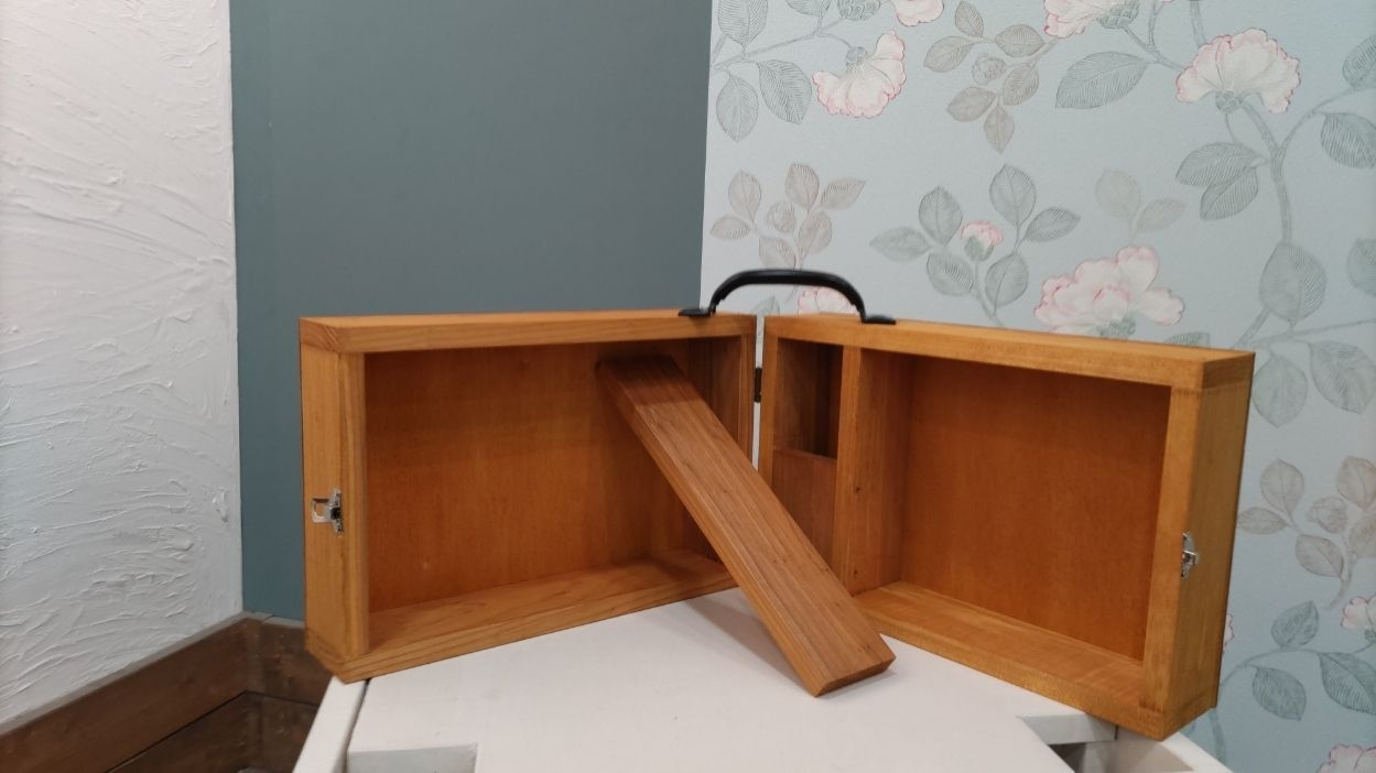 先日トランク風小物ケースを作ってきました。実は 初めてWSに参加して作ったのが これです。その時より作業工程は理解できているものの あいかわらず まっすぐビス止め(穴あけ)するのは下手です😮💨
