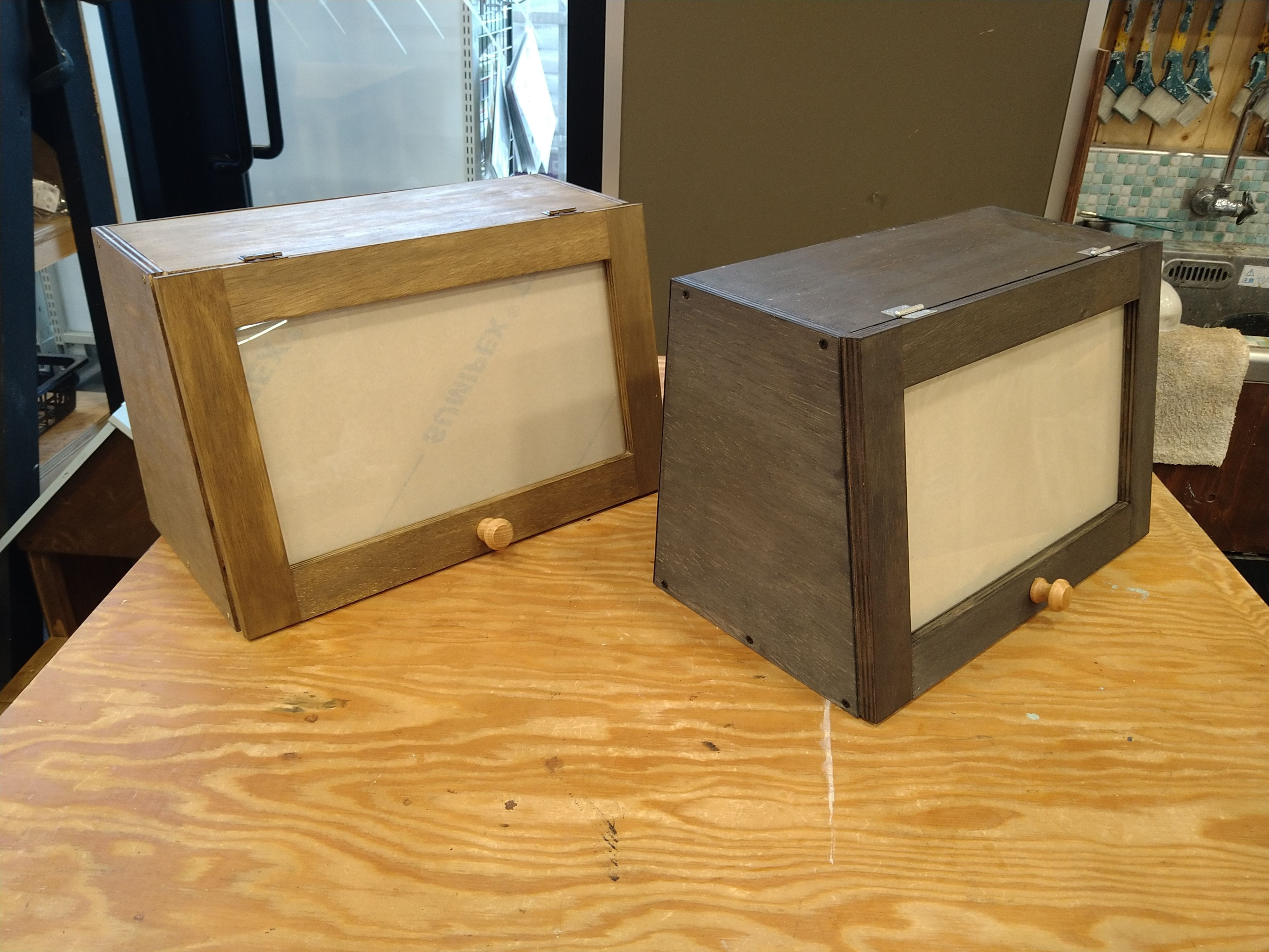 トップ > その他 > カフェ風ショーケース nohashi 2022/04/01 22:27 カフェ風ショーケース 今日は午前午後で2個作ってきました。見本は扉の前面にもタッカーがうってあったので担当の方に「これがあるとかっこよくないですね。タッカーしなくてはだめですか?」と聞いたら木がそってしまうかもとのこと…。でもやっぱり嫌だなぁと思いとりあえず前面はなしでやってみることに。だめなら後で打つ方向で。 今のところ問題なし! 今日はゆうちゃんさんも1日コースだったのではじめましてでしたが楽しい時間を過ごすことができました☺️ いいね 共有する 共有する X LINE リンクをコピー コメントする 9 件の返信 (新着順) ミュートしたユーザーの投稿です。 投稿を表示 檸檬 2022/04/02 20:45 私、同じ物作りましたが、前面にタッカー打ってないですよ😲‼️ やりたくないではなく、作業工程に入っていませんでした❓️こういう物のレシピは同じはずですが?変ですね😅 いいね 返信する ミュートしたユーザーの投稿です。 投稿を表示 nohashi 2022/04/02 21:04 店舗に教えた人がそのように教えたのか店舗での判断なのかわかりませんが時々このようなことってありますよね😅 あるはずの部品がなかったり、板の数が違ったり…。教えてもらう方は初めてのことが多いのでわからず作るから後でえっ😱ってなります。 いいね 返信する ミュートしたユーザーの投稿です。 投稿を表示 べるん 2022/04/02 08:55 素敵な色味ですね✨ タッカーは色々な作品で使われている様ですが、目立つ所には出来れば打ちたく無いですね😅 いいね 返信する ミュートしたユーザーの投稿です。 投稿を表示 nohashi 2022/04/02 14:56 裏面ならいいんですけど正面は萎えてしまいます…。😱 いいね 返信する ミュートしたユーザーの投稿です。 投稿を表示 わいず 2022/04/02 08:11 2年位前に作ったんですけど、正面にタッカーあったっけ❓ 今見たら打ってなかったです。 全然問題無しで〜す👍😊 午前午後と頑張りましたねっ✌🏻😊 いいね 返信する ミュートしたユーザーの投稿です。 投稿を表示 nohashi 2022/04/02 08:40 経験者の方からそう言っていただけると安心します。ありがとうございます。 そのお店で昔作った作品なのかやはり窓付きのものがおいているのですがそれも前面からタッカーを打ってあったので店舗の考え方なのかその店舗に教えに来られた方のやり方がそうなのかってことでしょうね。 希望を伝えてよかったです。 いいね 返信する ミュートしたユーザーの投稿です。 投稿を表示 ゆー 2022/04/02 06:46 色違いで2つ共素敵な色ですね😊 前面のタッカー無しだと反ってしまうのですね😞タッカー無し今後どうなるか気になります。 いいね 返信する ミュートしたユーザーの投稿です。 投稿を表示 nohashi 2022/04/02 08:37 どうなんでしょうね・・・私も気になるところです。 いいね 返信する ミュートしたユーザーの投稿です。 投稿を表示 ぷぅ 2022/04/02 01:32 そうなんですね、タッカーなんだ。 確かに気になる いいね 返信する ミュートしたユーザーの投稿です。 投稿を表示 nohashi 2022/04/02 08:36 ですよね~。見栄えも大事です! いいね 返信する ミュートしたユーザーの投稿です。 投稿を表示 Beni 2022/04/02 00:13 nohashiさん、いい色の作品、二つできましたね。素敵です! いいね 返信する ミュートしたユーザーの投稿です。 投稿を表示 nohashi 2022/04/02 08:36 ありがとうございます。いろってほんと迷いますよね。しかも塗るのが苦手なのでいつも皆さんの倍くらい時間かかってしまうんです。 いいね 返信する ミュートしたユーザーの投稿です。 投稿を表示 しょうしん 2022/04/02 00:11 同じく作品を午前と午後に作成したことないのですが、 午後からの方は段取りも分かってかなり気持ちに余裕がある状態で出来そうですよね。 どちらも素敵な仕上がりですね。 いいね 返信する ミュートしたユーザーの投稿です。 投稿を表示 nohashi 2022/04/02 08:34 これはそれほど複雑なものでなかったので午後は午前中の復習のつもりでちょっと余裕をもって作成することができました。普段だと作りっぱなしですぐ忘れてしまうので良かったです。 いいね 返信する ミュートしたユーザーの投稿です。 投稿を表示 ゆうちゃん 2022/04/01 23:47 今日午前・昼食・午後・WSが終わった後も、本当に1日ありがとうございました🤗 残念ながら、浦和美園店午後でした😢 またご一緒できるの、楽しみにしています。その時はよろしくお願いします🙇♀️ いいね 返信する ミュートしたユーザーの投稿です。 投稿を表示 nohashi 2022/04/02 08:30 お疲れさまでした! 3つ並べた感じはいかがでしたか? またどこかでご一緒することありそうですね。よろしくお願いします。 いいね 返信する ミュートしたユーザーの投稿です。 投稿を表示 ゆうちゃん 2022/04/02 11:00 こんな感じになりました。 取手も家にあったセラミックのに変えてみました。色は全部バラバラでした😆 いいね 返信する ミュートしたユーザーの投稿です。 投
