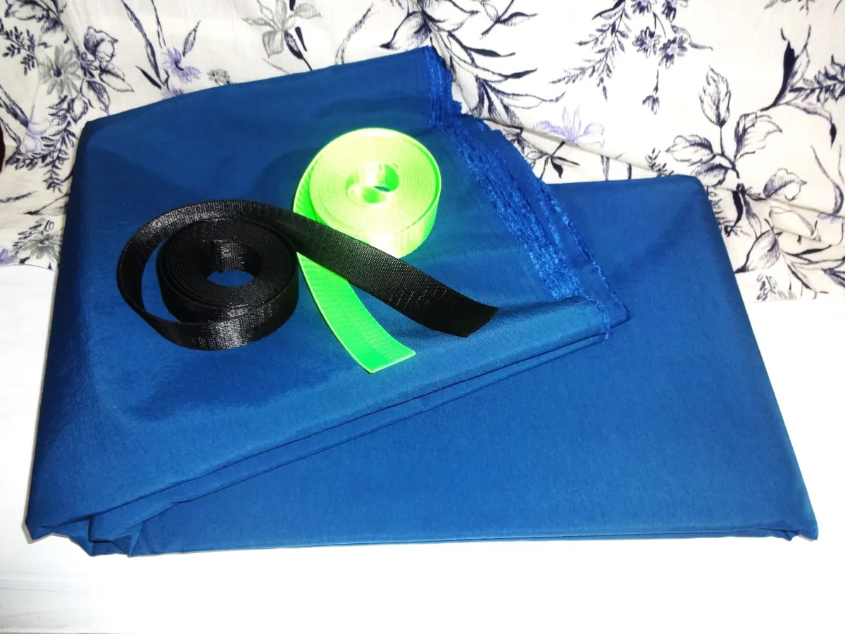 縫製工場整理品 ナイロンタフタ(撥水加工)巾135cm、長さ10m、濃渋青系のシワ加工、
