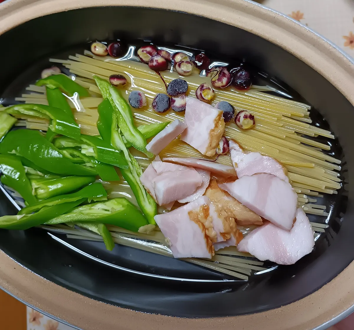 万願寺とうがらしとベーコンが入って美味しそうです☺️
