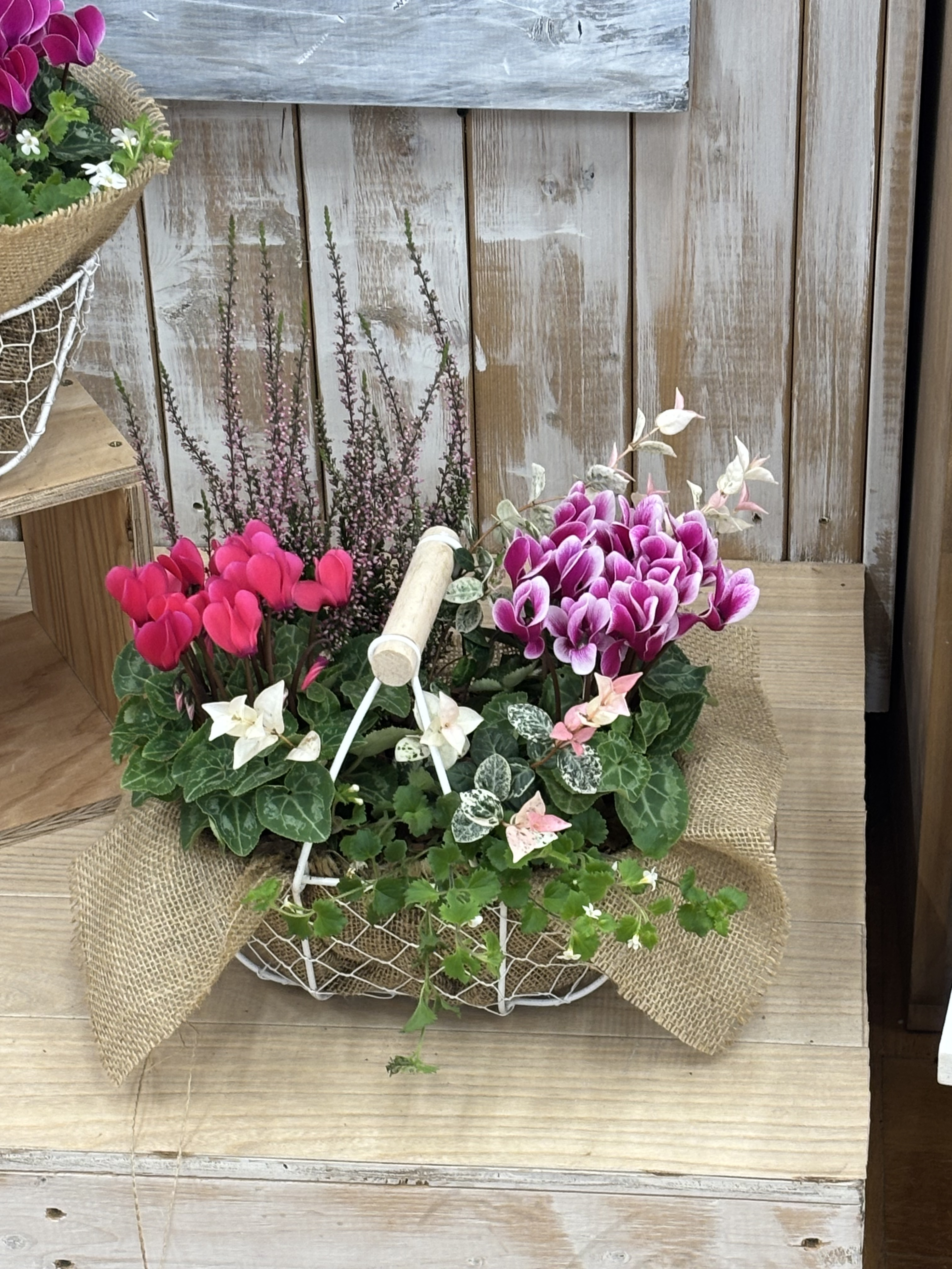 ガーデンシクラメンの可愛いらしさの中に、初雪カズラの淡い色合いの優しさが相まって 素敵です✨