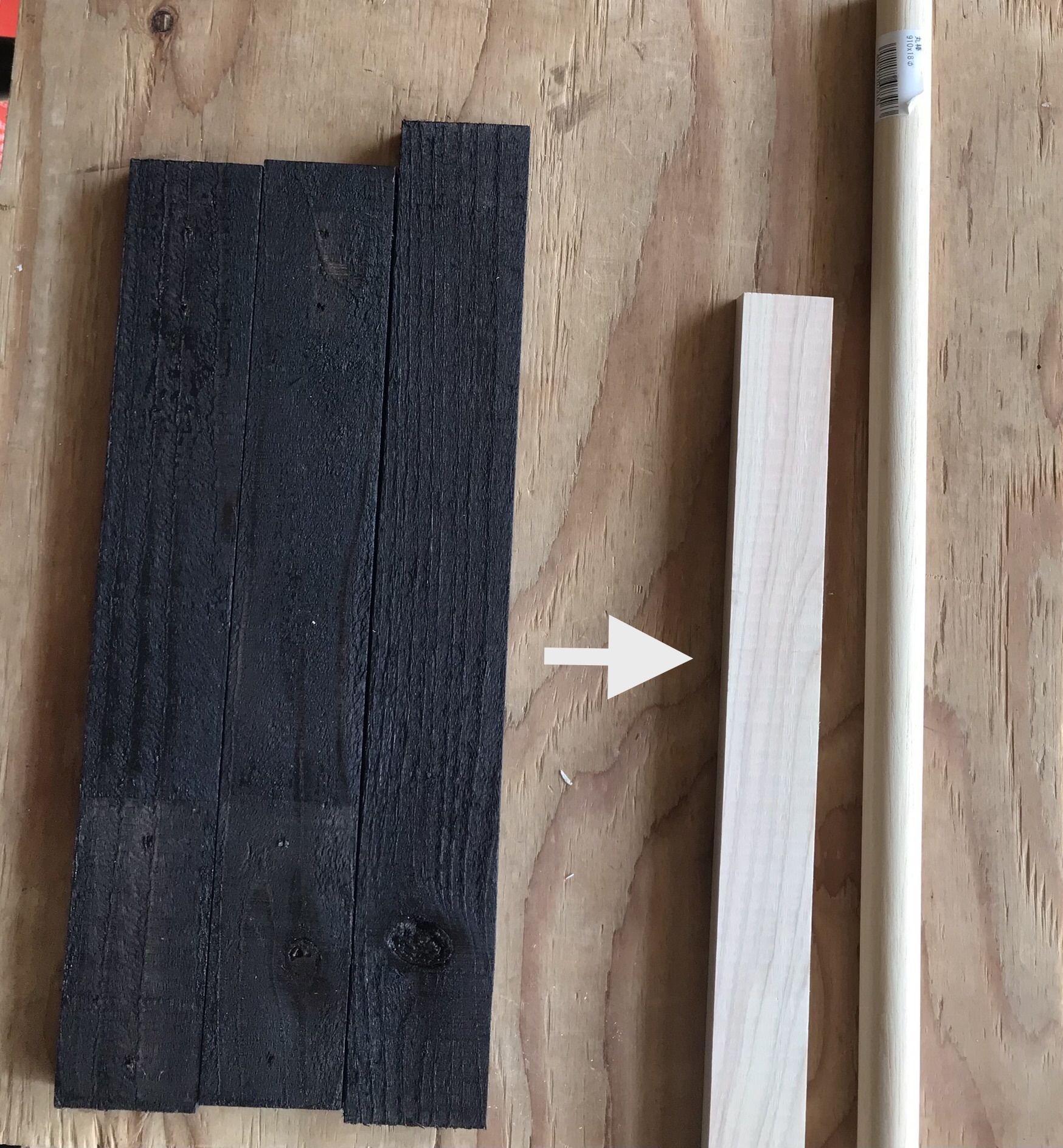 45×300から30×350と18Φの丸棒に変更してステンシルを入れて完成。