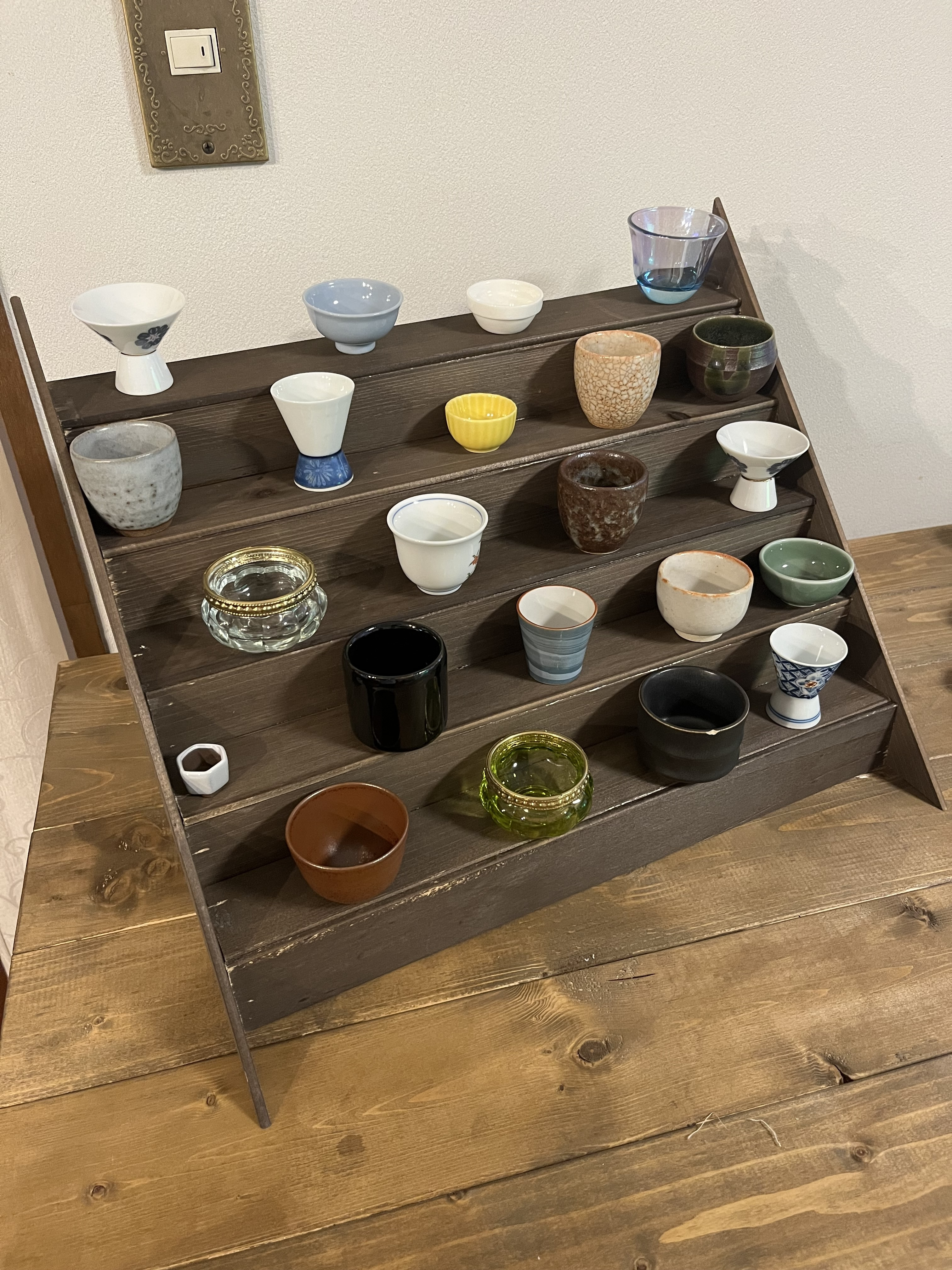 どこでも作品展示、小物展示ができる魅力的な改良版階段飾り棚ですね✨