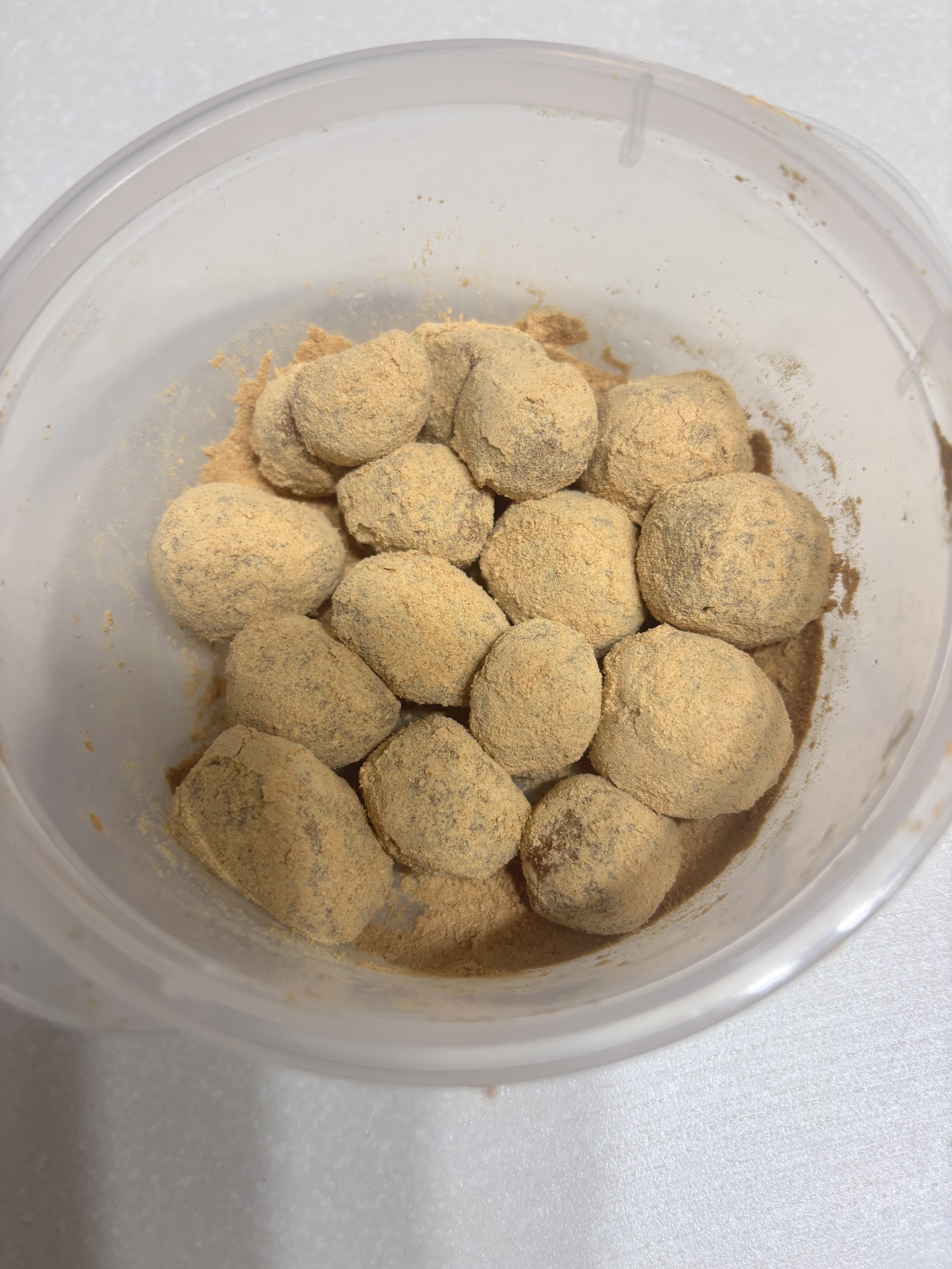 1:1という事なので、きな粉と相談して50gになりました🤭