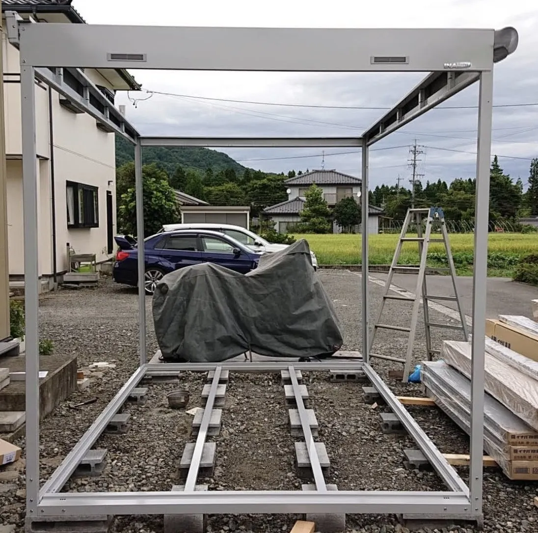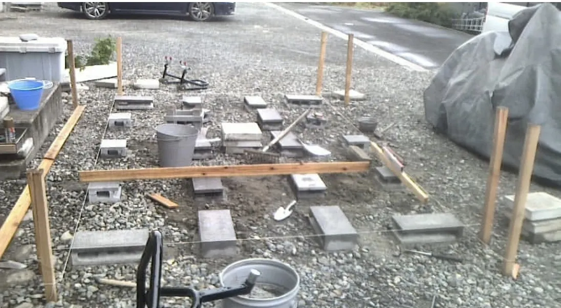 重いバイクを保管するのだから基礎からかなりしっかりしないとダメですよね。