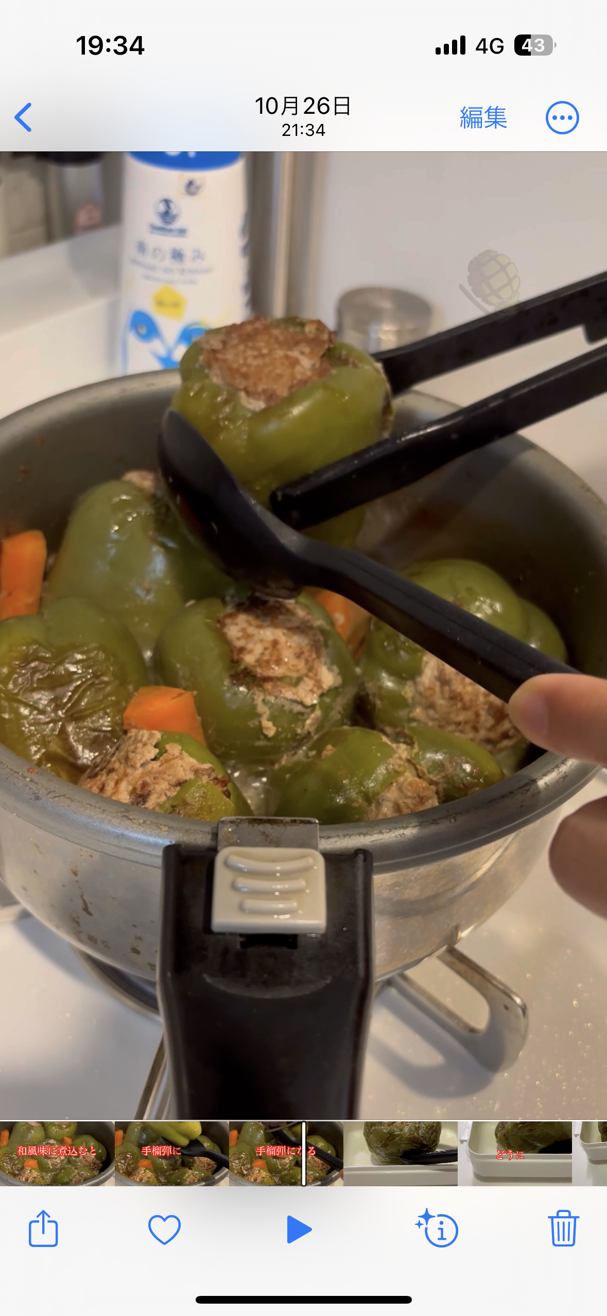 投稿を表示へーピーマンの肉詰めを煮込んでるんですね!
