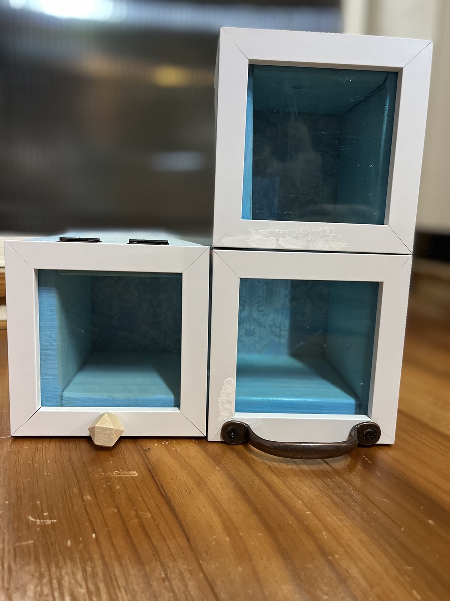 トップ > DIY > インテリア > 夏のDIY2022【L型に見えないL型シェルフミニ】 しょうしん 2022/08/20 00:16 夏のDIY2022【L型に見えないL型シェルフミニ】 前回の失敗を教訓として、 もう一度作りました、ミニL型シェルフ。 家に残っていた1×4を使いきり、 100均のガラスコースターをヤスリで磨いて絵を消してガラス用塗料で塗り、 それを写真立てにはめ込んで扉にしてみました。 開けるとこんな感じです壁紙も100均で購入。 なかなか涼しげな作品になりました。 100均にしては華やかな壁紙でもやっぱりWSのシェルフが作りたいので、 来月作りに行きます。 何かカプセルホテルみたいですねw いいね 共有する 共有する X LINE リンクをコピー コメントする 5 件の返信 (新着順) ミュートしたユーザーの投稿です。 投稿を表示 aoi 2022/08/20 11:20 アイデア沢山詰まってますね~✨👏 そして完成品もと~っても素敵💕 作ってみたくなりました🤗 いいね 返信する ミュートしたユーザーの投稿です。 投稿を表示 しょうしん 2022/08/20 12:23 とっても簡単ですからぜひ作ってみてください。 1×4材と塗料以外は全て100均ですから、 失敗してもそこまで気にならないので安心して作れますよ。 いいね 返信する ミュートしたユーザーの投稿です。 投稿を表示 吉光 2022/08/20 07:29 とても可愛らしいシェルフで雑貨屋さんに置いてそう🥰 さりげなく涼しげな空間になって夏らしいです😊 いいね 返信する ミュートしたユーザーの投稿です。 投稿を表示 しょうしん 2022/08/20 12:22 ありがとうございます😊 今の季節はいいのですが、 これからの季節には似合わないですよね... また色塗り替えればいいですかねw いいね 返信する ミュートしたユーザーの投稿です。 投稿を表示 Smile 2022/08/20 05:55 またまた素晴らしいアレンジですね。 私にはなかなかアレンジが浮かばないので参考になります。 来月が楽しみですね。 いいね 返信する ミュートしたユーザーの投稿です。 投稿を表示 しょうしん 2022/08/20 07:08 ありがとうございます😊 アレンジというよりは、自分はWSで作ったり見たりしたもののサイズを変えて作ってるだけですよ。 そんな大したことはまだまだ出来ないです。 いいね 返信する ミュートしたユーザーの投稿です。 投稿を表示 コウモリ 2022/08/20 05:48 しょうしんさん。 またまた、可愛いミニシェルフ💕 ましてや、扉まで拘っておられる〰️✨☝️✨ これだけ作られたら🛠 本番は完璧ですね〰️🚀 いいね 返信する ミュートしたユーザーの投稿です。 投稿を表示 しょうしん 2022/08/20 07:06 ありがとうございます😊 前回子供らが作っていたのを見ていたので、 イメトレだけは完璧ですw いいね 返信する ミュートしたユーザーの投稿です。 投稿を表示 ぷりぶり 2022/08/20 00:48 しょうしんさん もう、脱帽ですよ!!! 色々工夫された部分が見えて、爽やかに仕上がりましたね😳✨✨ うんうん、来月もL型シェルフ行くのですね👍🎵予約取れましたか〰️☺️ 当日は思う存分(?)、楽しんで来てくださいね😆💕 いいね 返信する ミュートしたユーザーの投稿です。 投稿を表示 しょうしん 2022/08/20 07:06 ありがとうございます😊 思っていたようなものがとりあえずできたので一安心です。 来月の予約は取れたので今から楽しみです。 いいね 返信する