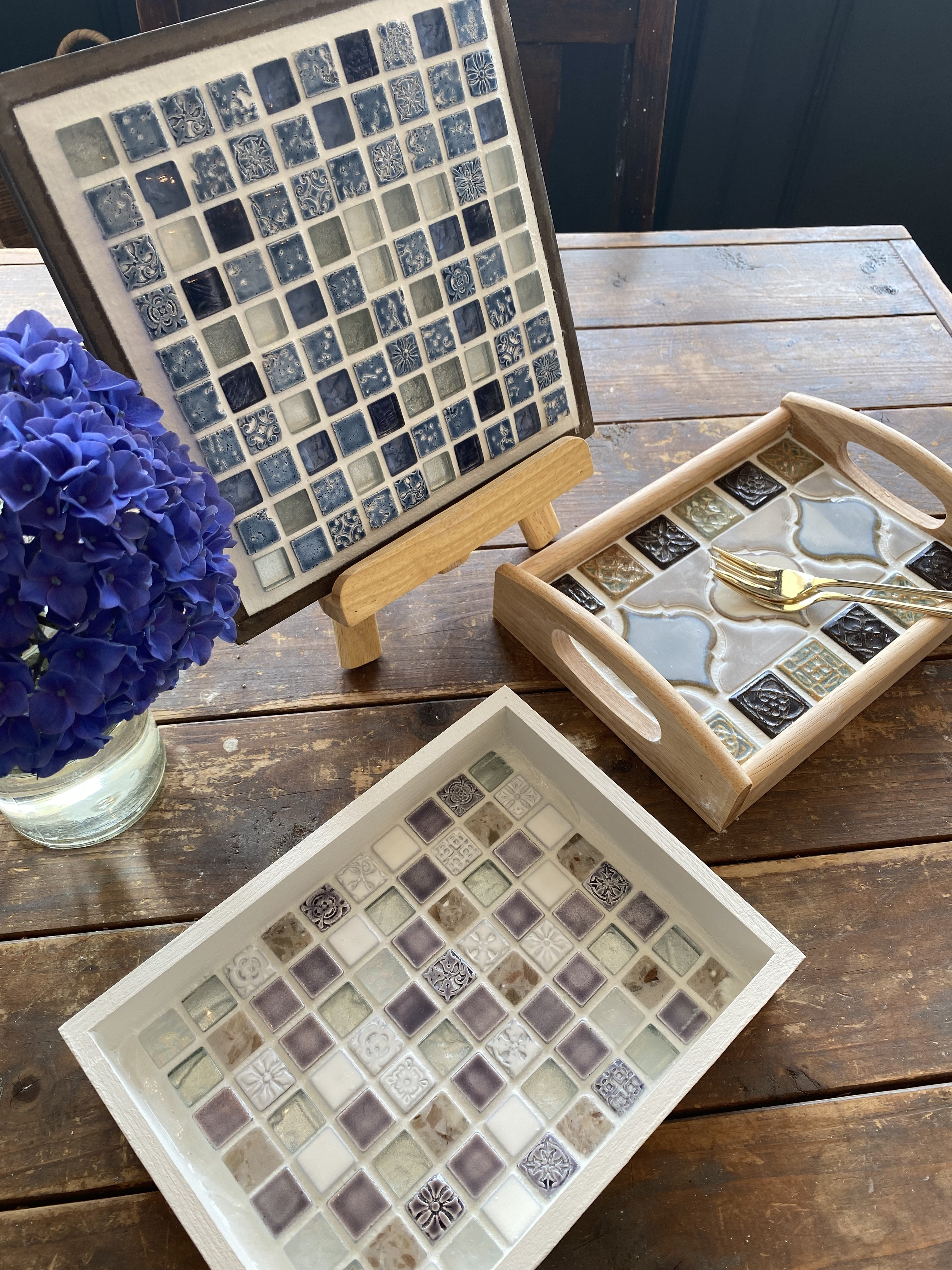 私はタイル細工って細やかで難しそうでやった事ないんですが、飾っておいてもキレイでいいですね✨