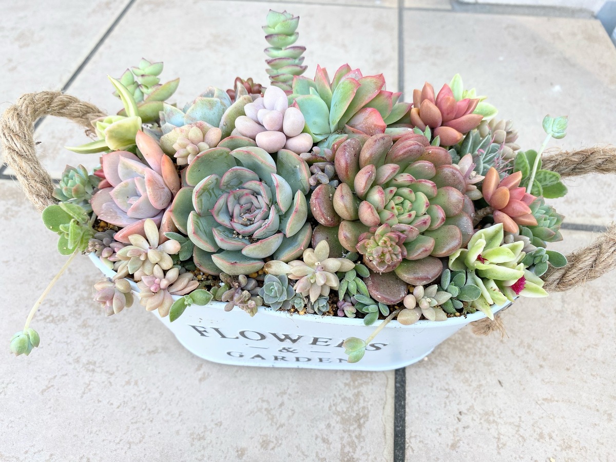 トップ > グリーン > 寄せ植え会 ぱみこ 2024/06/01 14:04 寄せ植え会 グラパラリーフを食べようと集まった友達と寄せ植えしましたー。 好きな多肉とセダムモリモリに寄せましたー。 この鉢、100円ショップで440円だったけど可愛かったので購入。 底穴を開けて、コーティングして、底がぺったんこだったので水捌けにキラキラシールを貼りました。 元気いっぱいにモリモリですね いいね 共有する 共有する X LINE リンクをコピー コメントする 1 件の返信 (新着順) ミュートしたユーザーの投稿です。 投稿を表示 monromi 2024/06/01 18:20 かわいい鉢に仕上がりましたね💓 鉢の色と多肉とセダム まとまった雰囲気がかわいいです🥰 いいね 返信する ミュートしたユーザーの投稿です。 投稿を表示 ぱみこ 2024/06/01 21:31 monromi monromiさんコメントありがとうございます。 お友達2人、好きなように好きな多肉を庭で選んでもらいました。 2人の希望で錆びないようにとトップコートを塗ったんですけど、麻ひもの持ち手の繊維が何気に邪魔でした😅 いいね 返信する