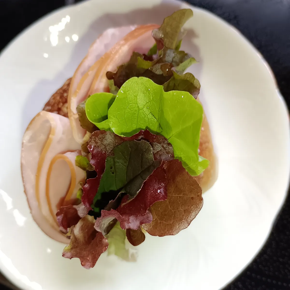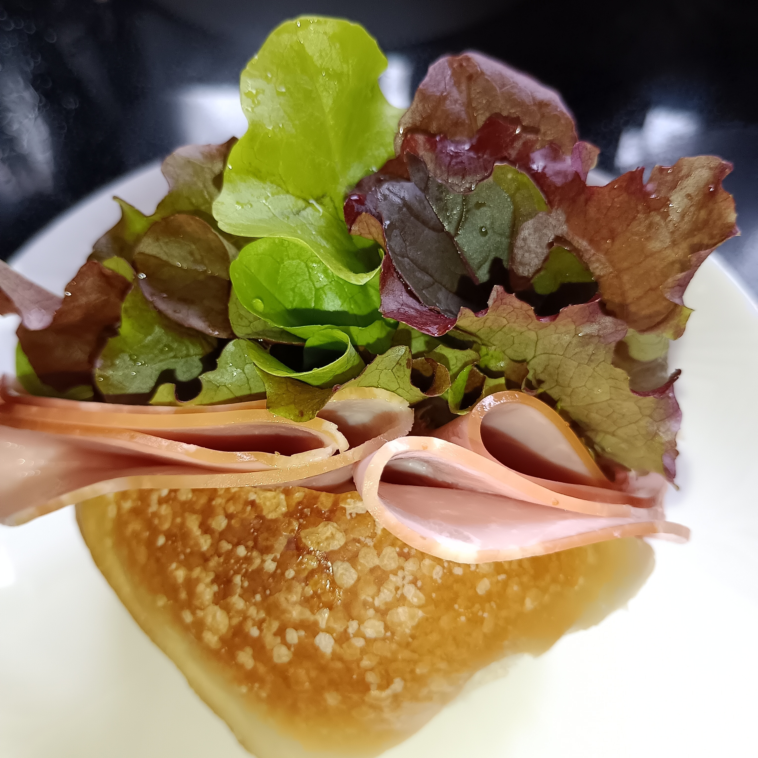 柔らかなベビーリーフとハムのしなやかさがピッタリ😍な、サンドイッチですね🎶