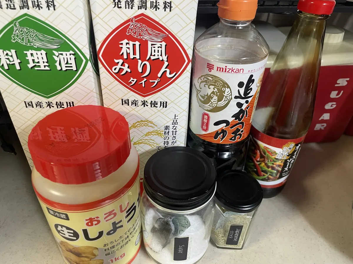 酒・味醂・麺つゆ・オイスターソース・生姜・味の素・和風顆粒出汁(昆布)・味玉の漬け汁✨