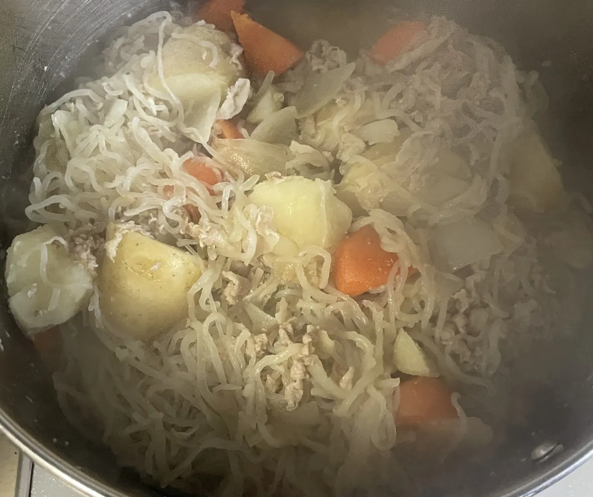 ダイエット目的とかではなく、煮溶けた玉ねぎとじゃがいもに絡まった白滝はそれだけでご馳走かも🥰