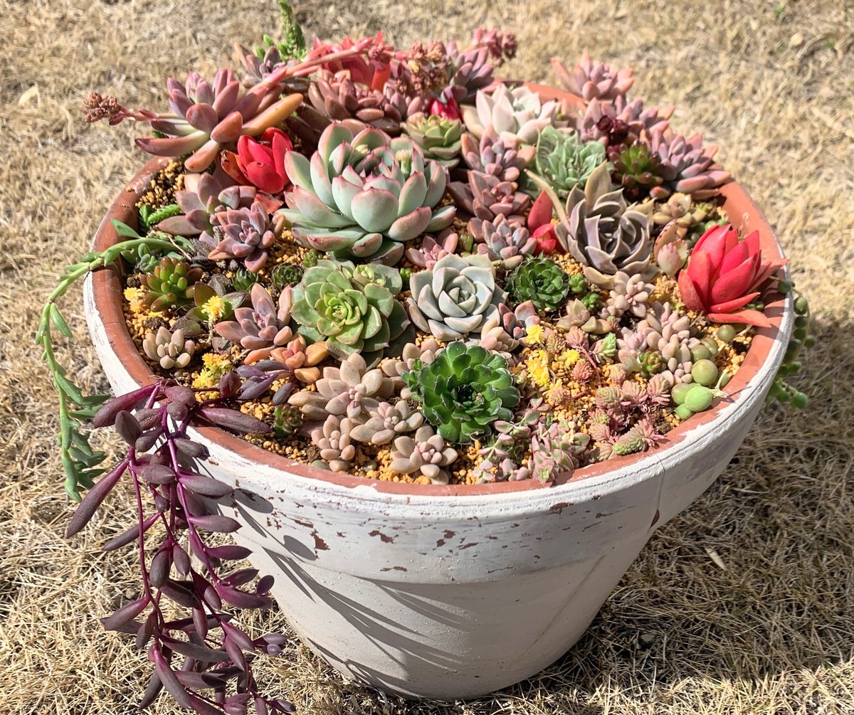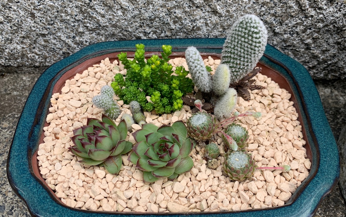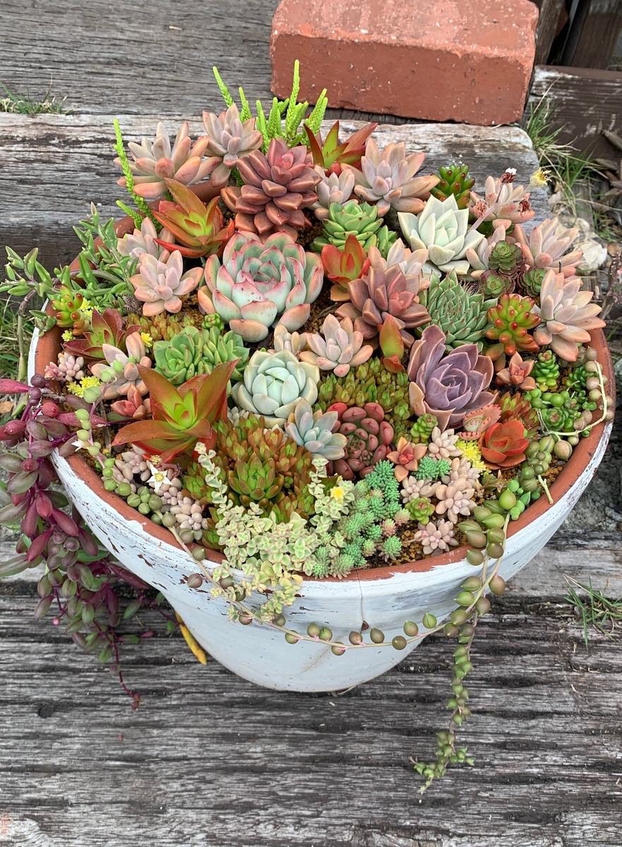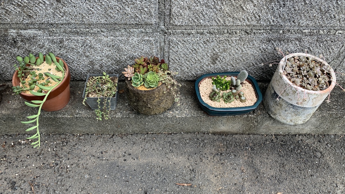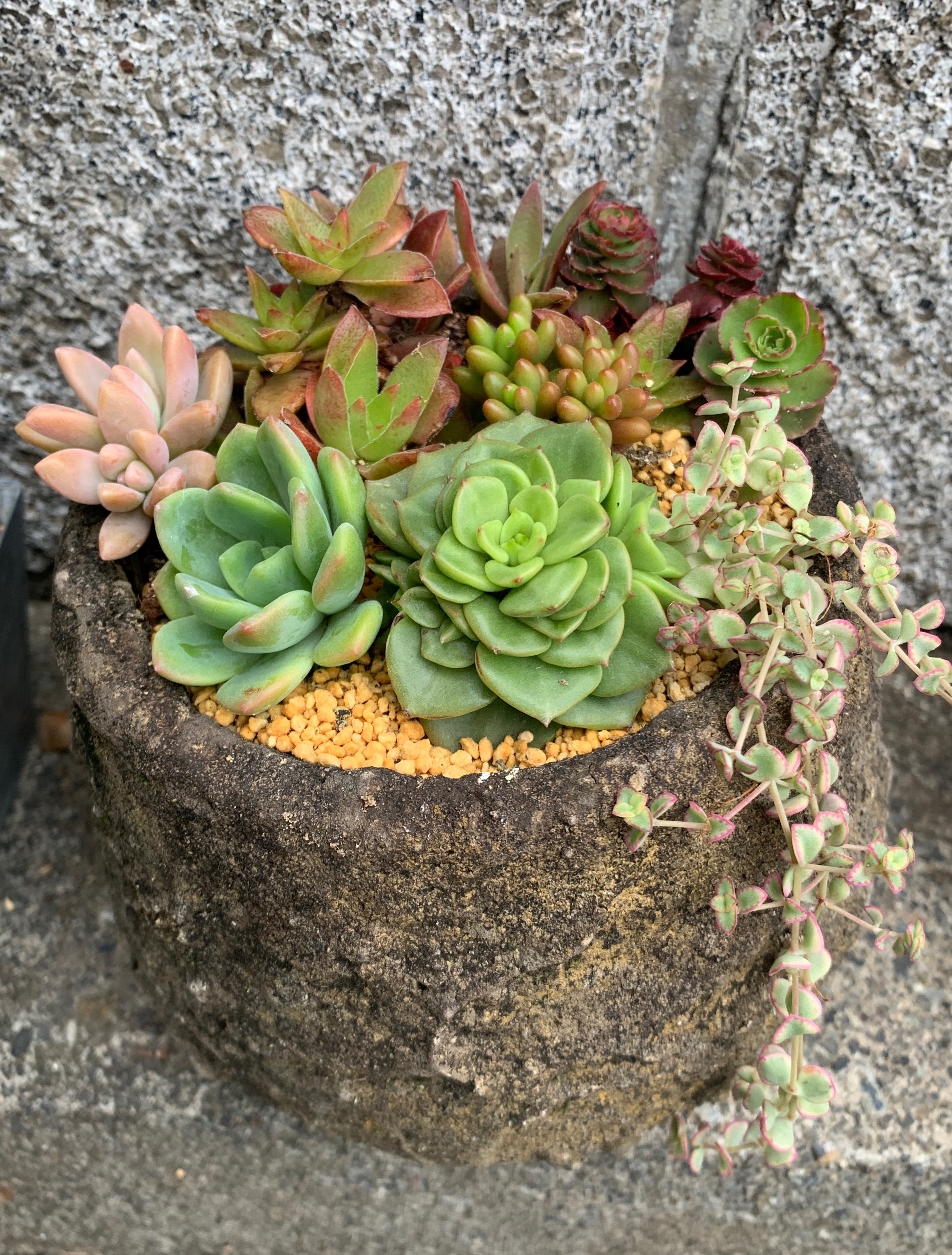 ご近所の美容室のお疲れ多肉ちゃん鉢を寄せ直しさせていただきました。